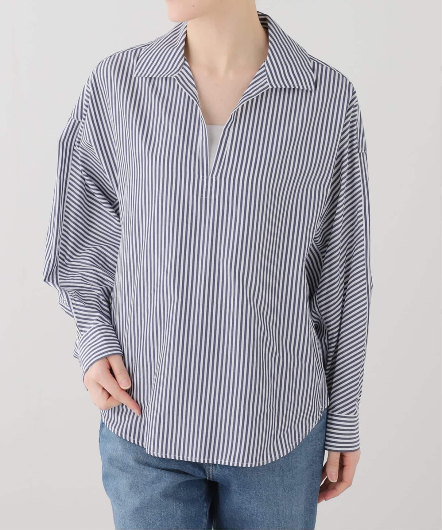 《予約》【洗える】スキッパーカラーフレンチシャツ