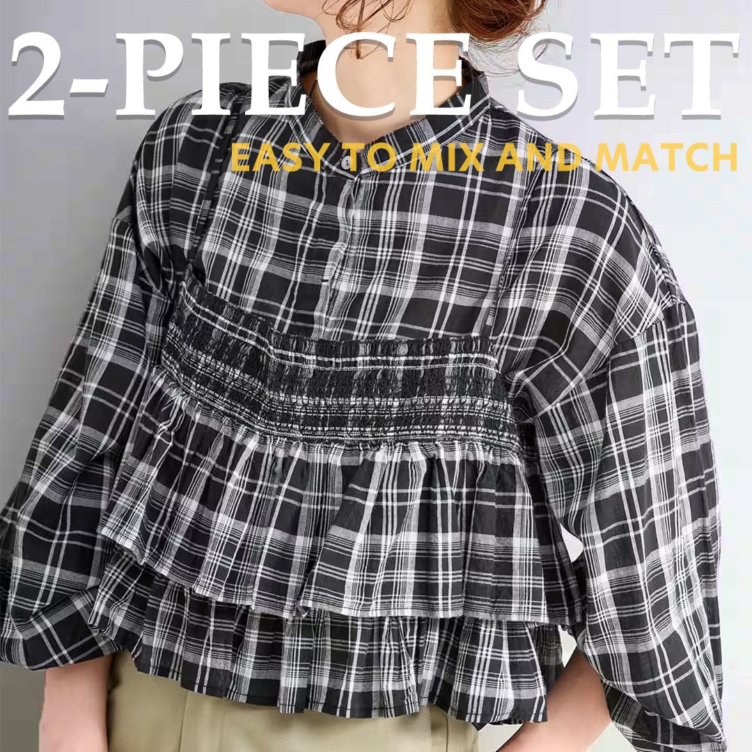 フリルキャミソールとセットになったキャッチー感のあるフェミニンブラウス。