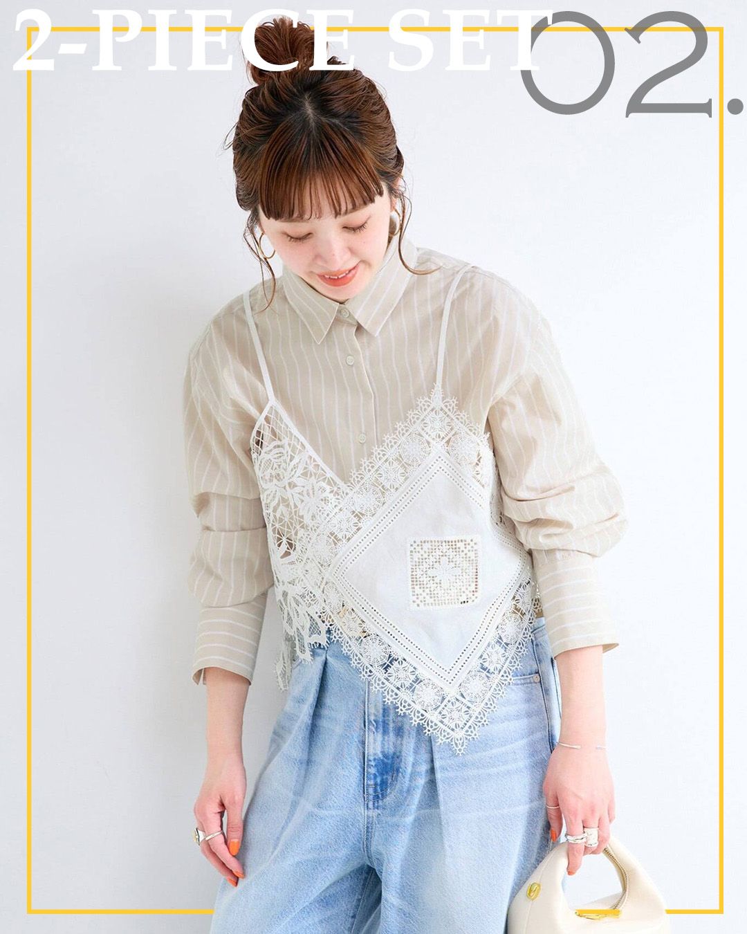 02.│《2枚セット》レースキャミ付きシャツブラウス