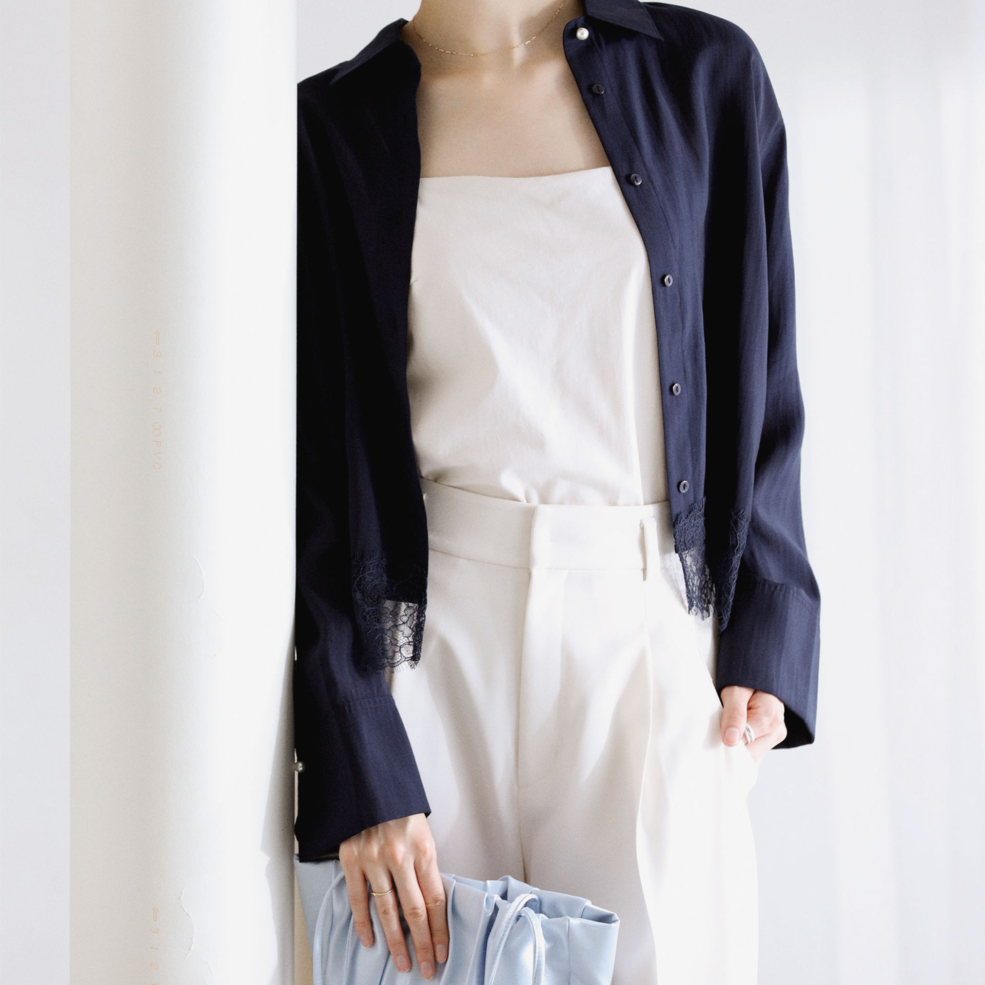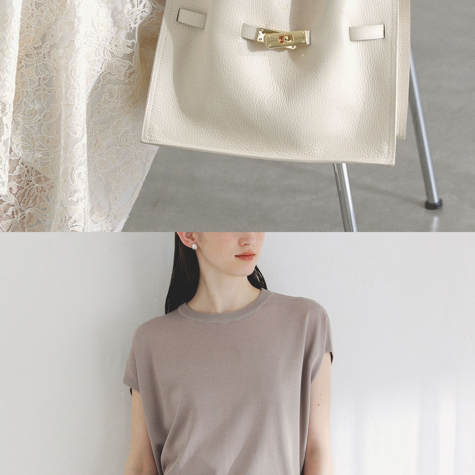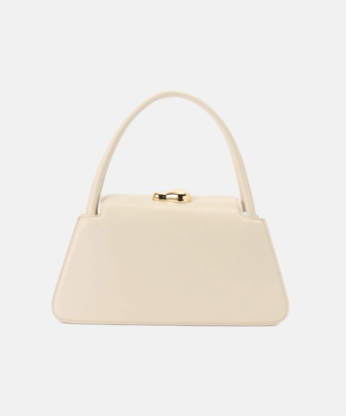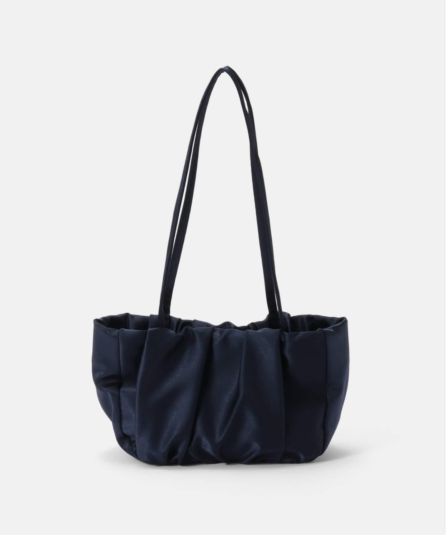 韓国発のバッグブランド。サテン素材のタック使い、長めのハンドルとのコンビネーションがモードでいてフェミニン。
