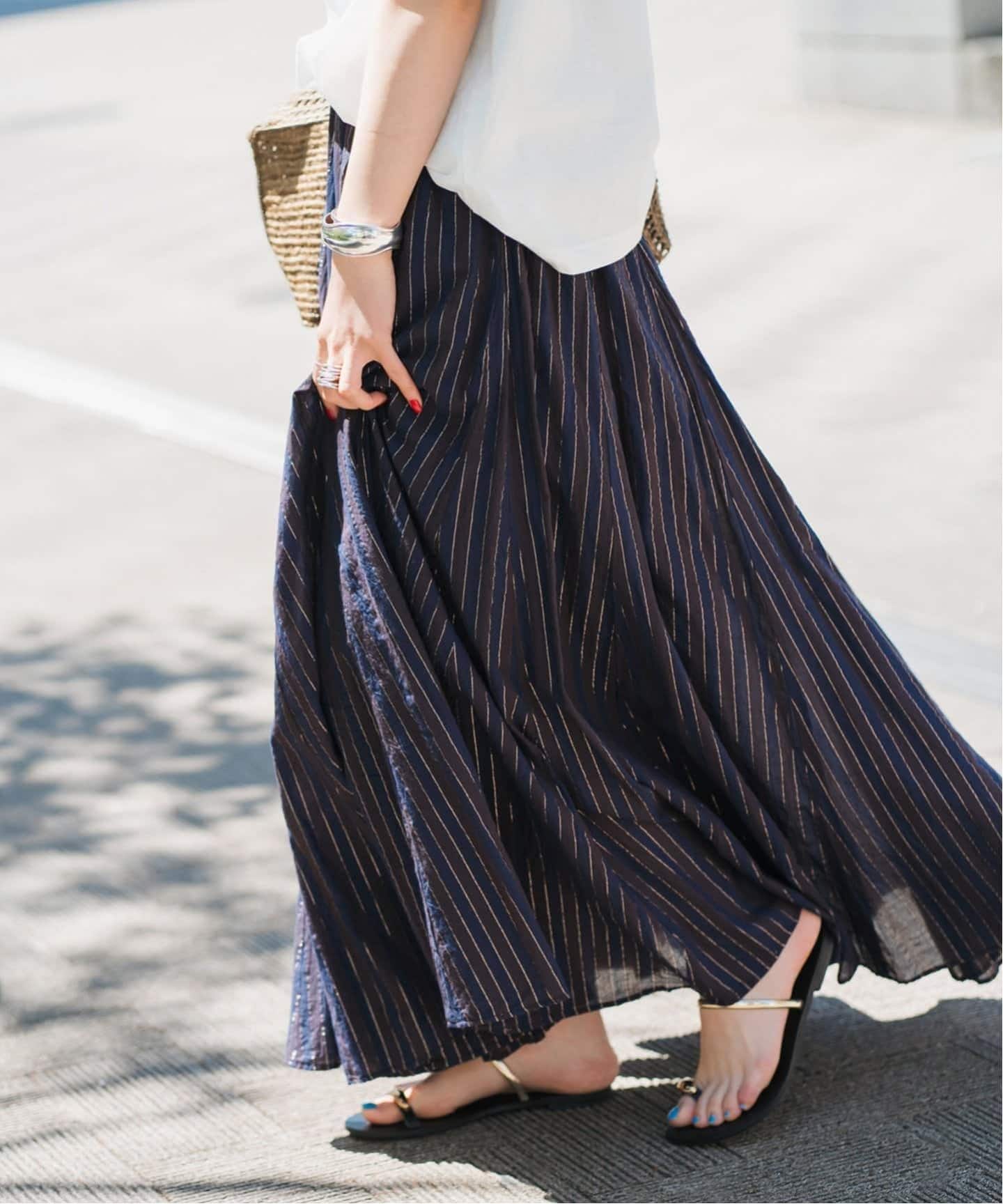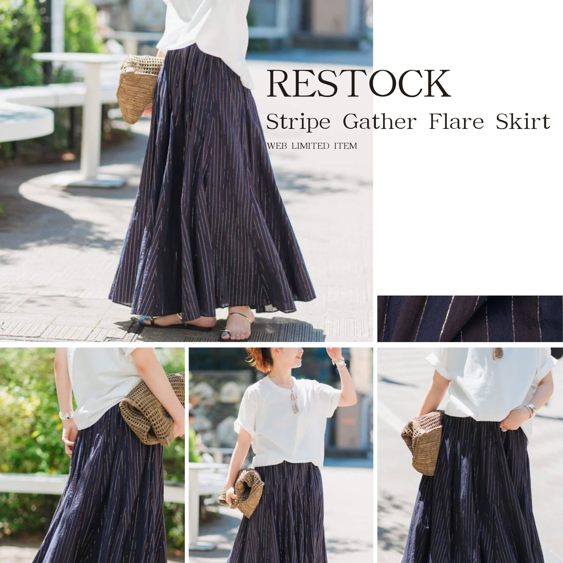 《WEB限定 / 追加2予約》HYUストライプギャザーフレアスカート