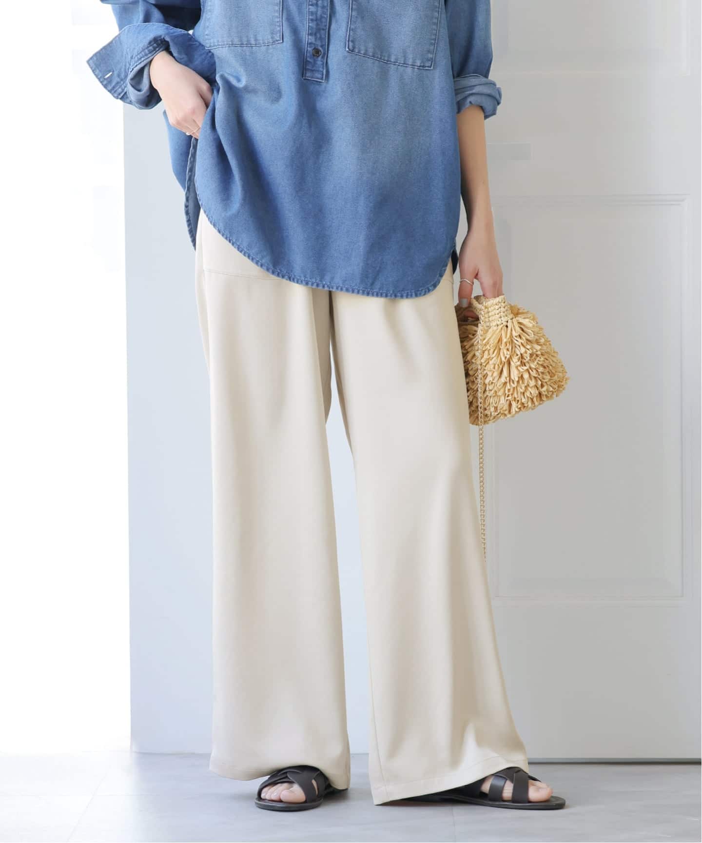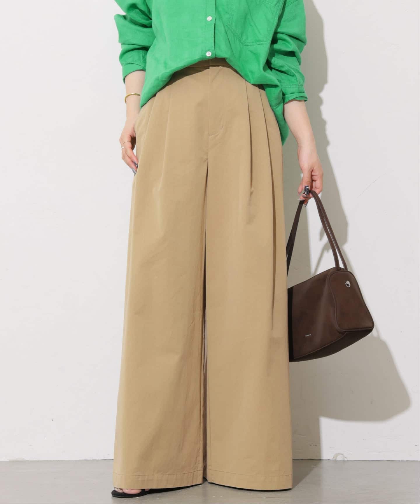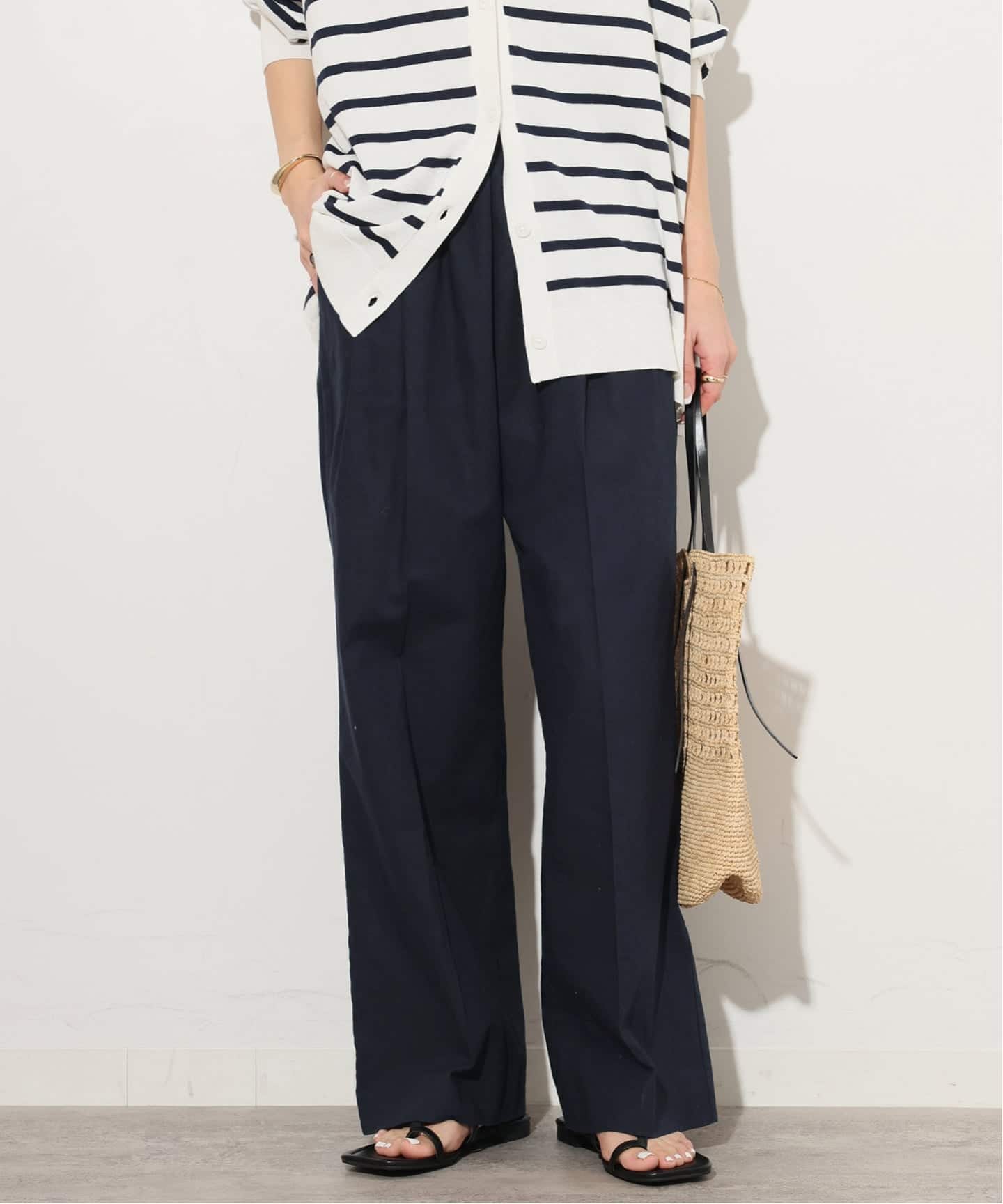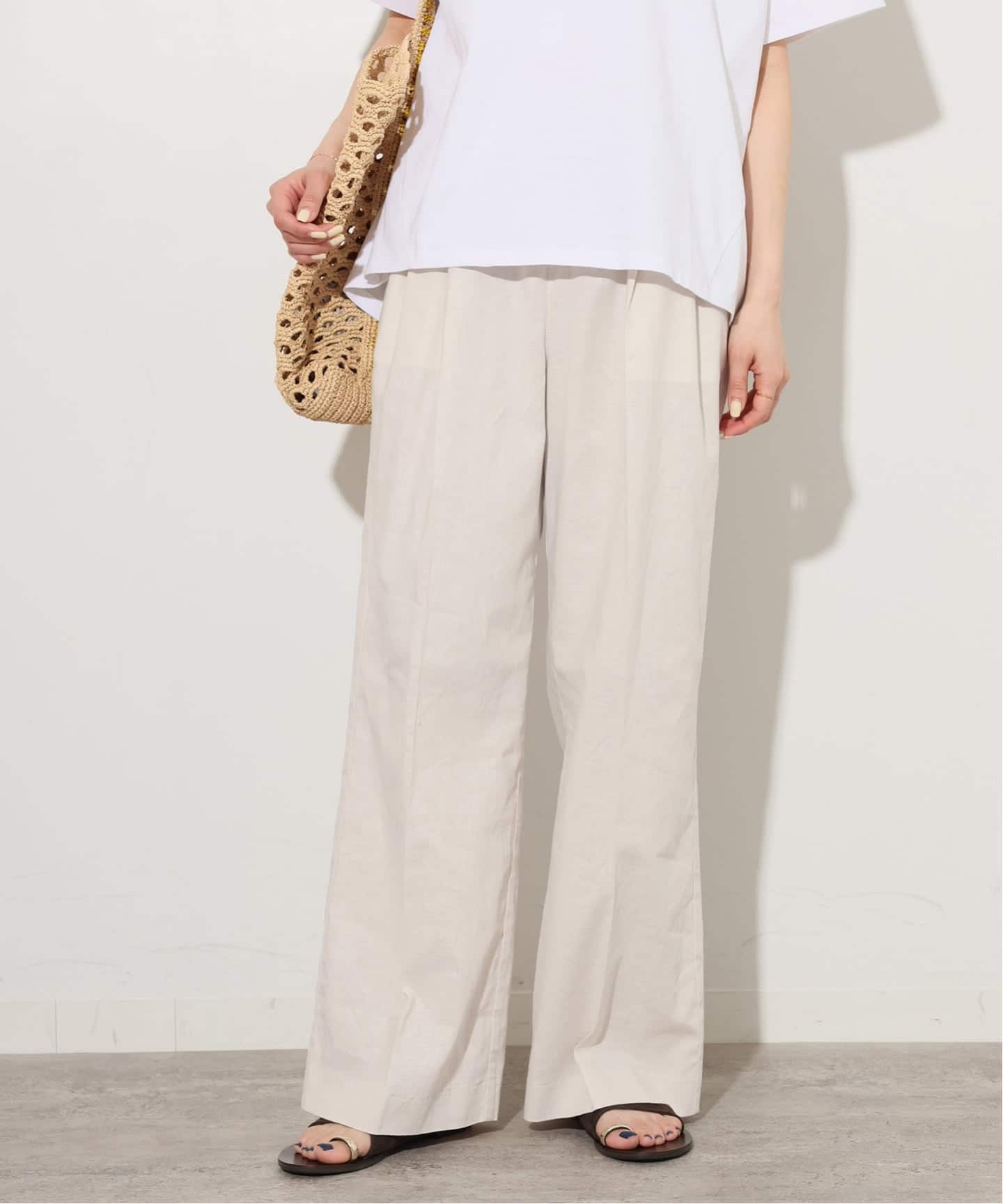 │リネンコットンギャザータックパンツ