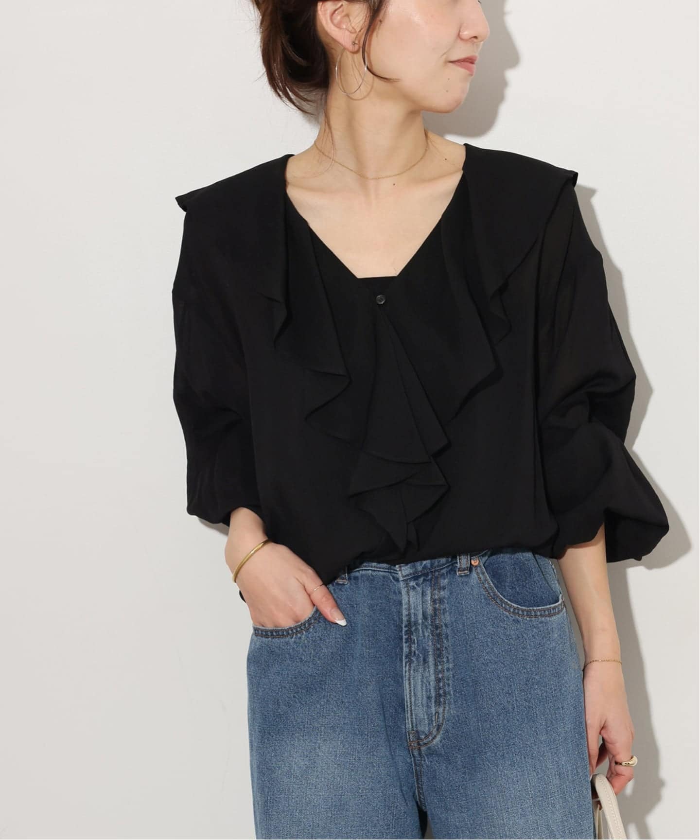 ワイドなボトムスとも、今っぽく合わせられるサイズ感にアップデート◎