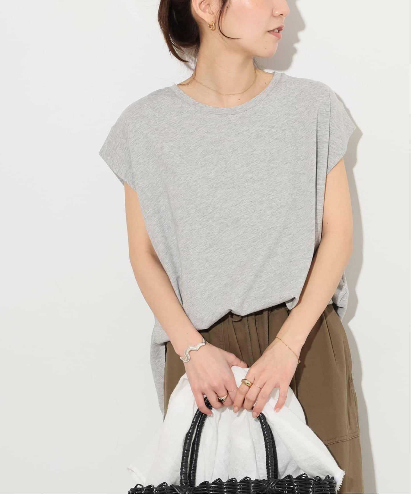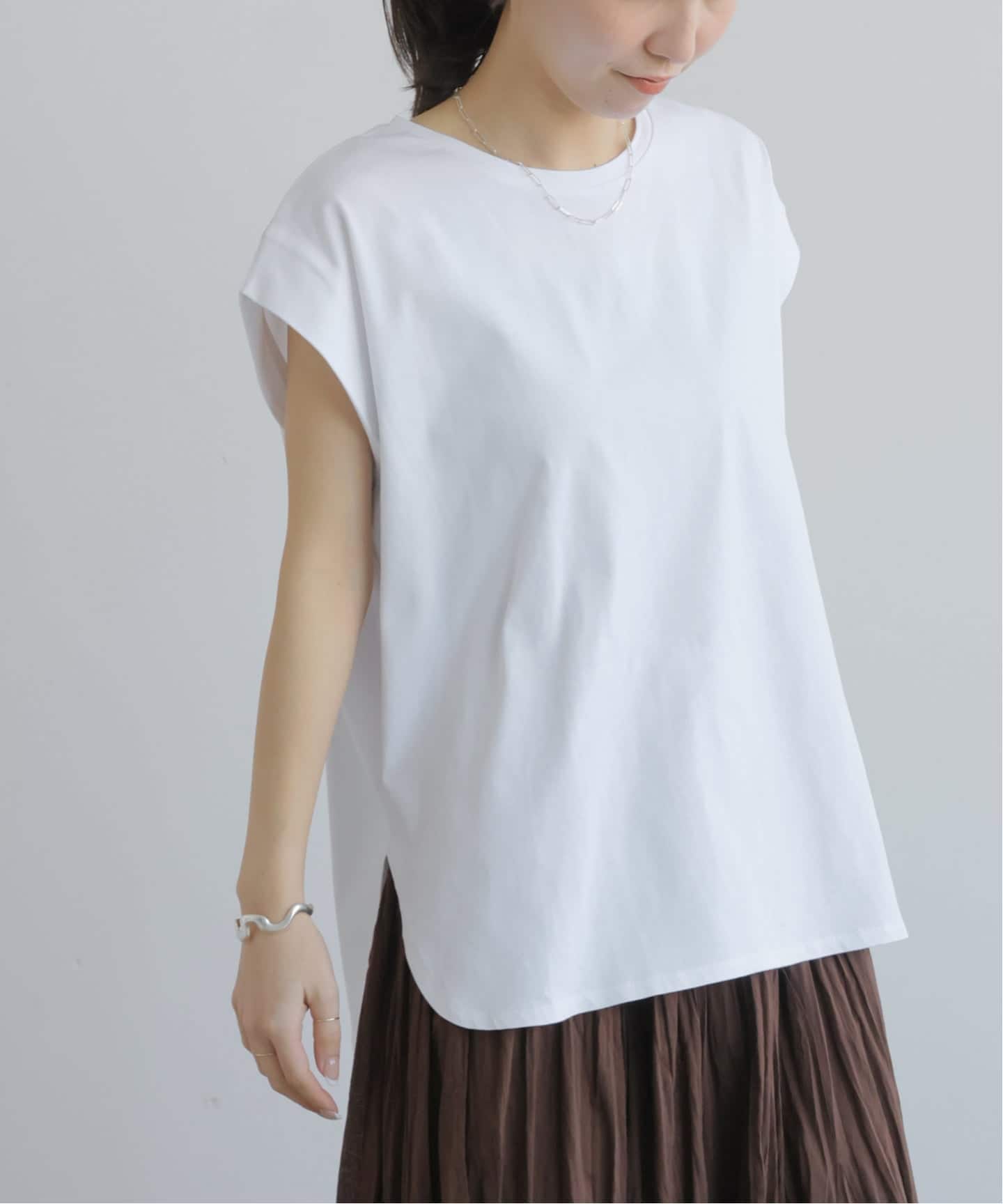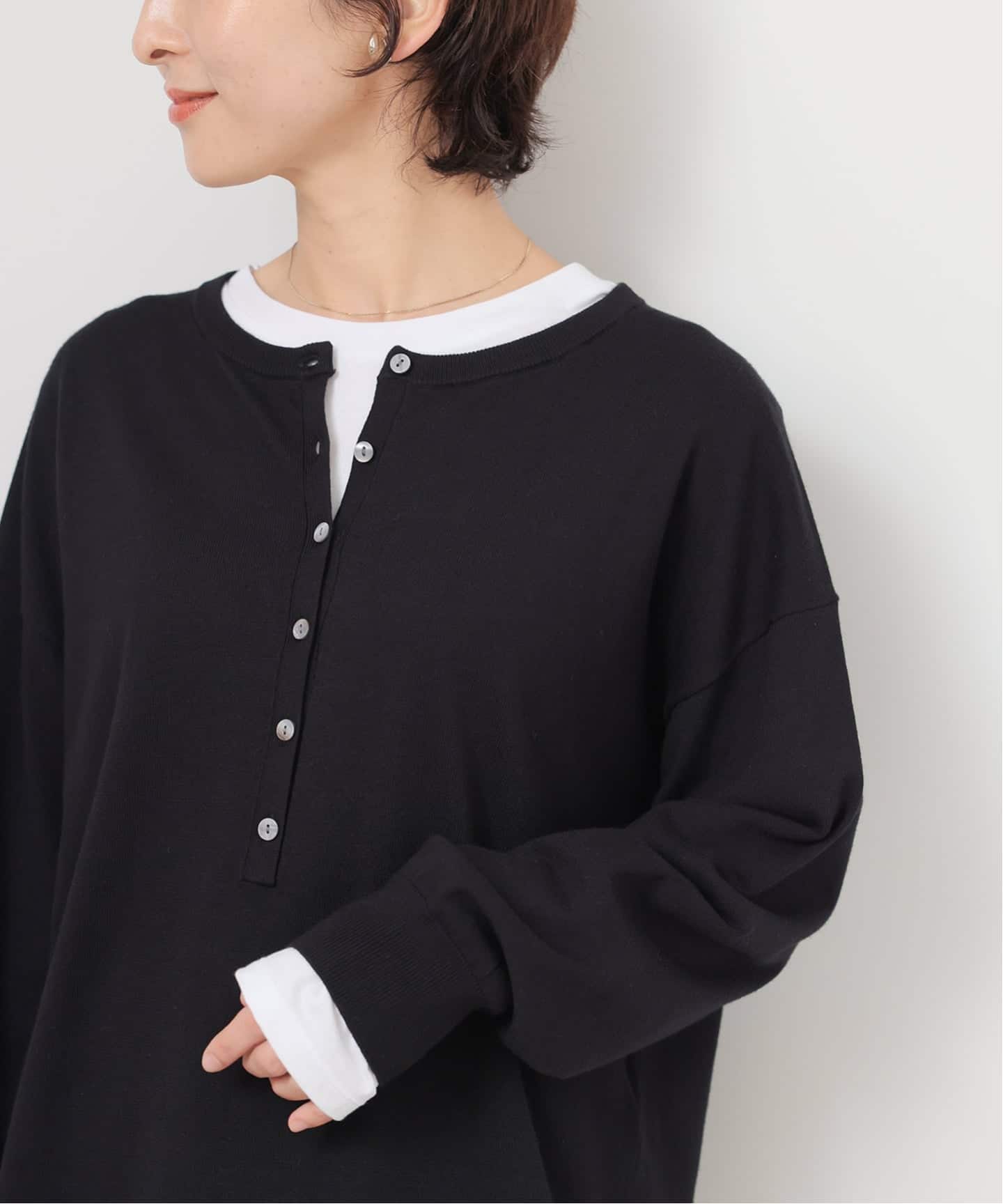 一枚使いはもちろん、シャツやジャケットなどのインナーにも映えるデザインが大好評!