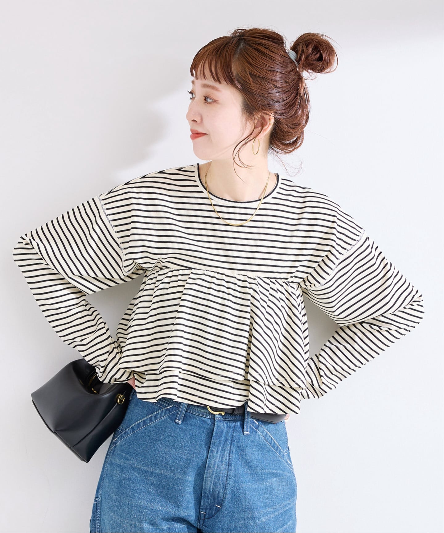 甘さのあるフリルデザインも、カットソーとの組み合わせで程よくカジュアルに。