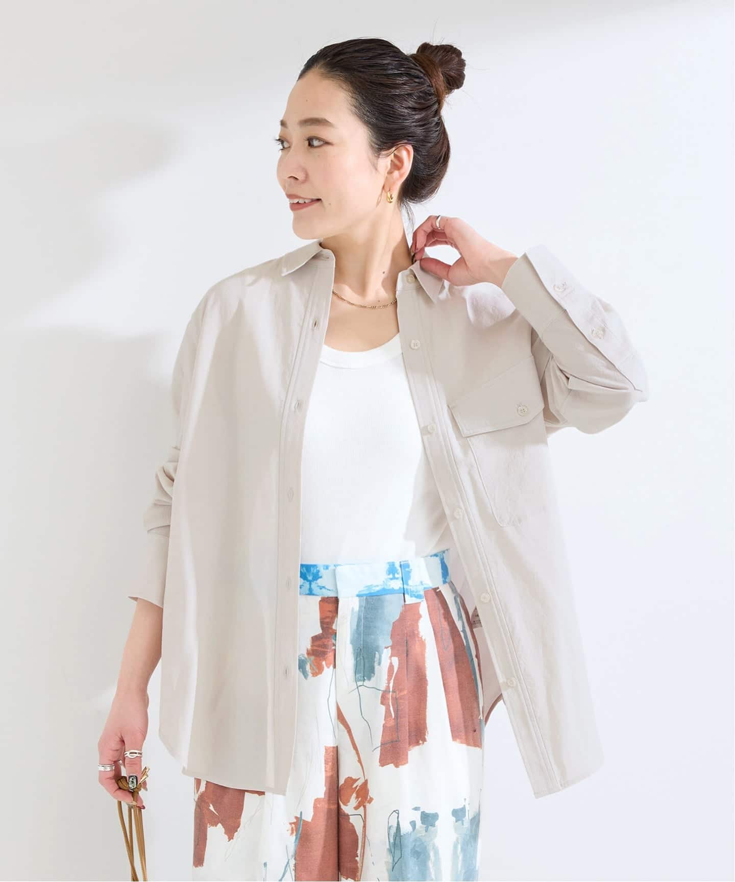 1枚着としてはもちろん、軽い羽織りとしても活躍する万能アイテム。