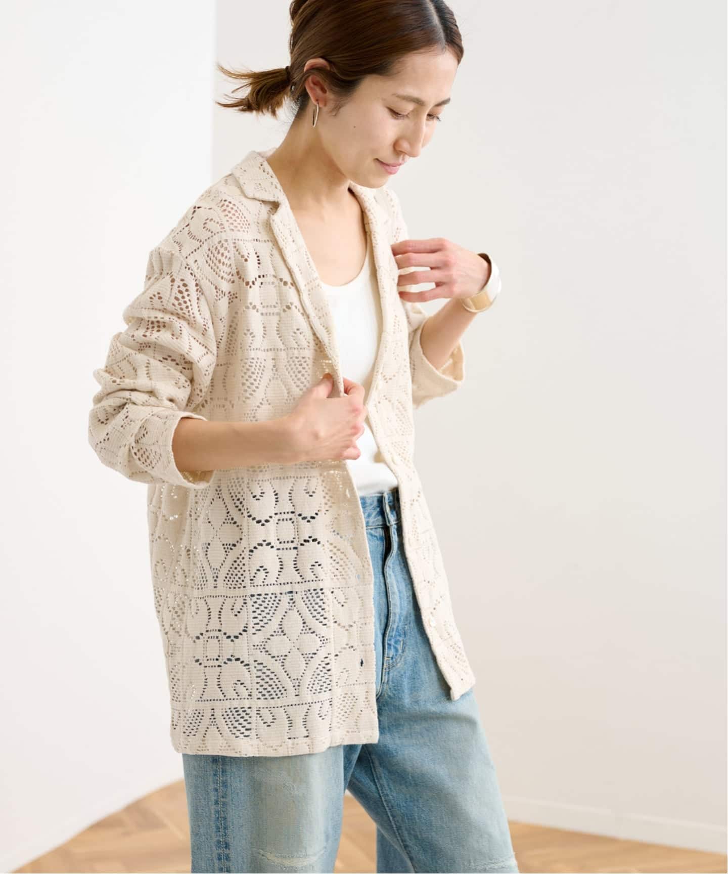 リラックス感のあるサイズに仕上げているので、前をあけて羽織るだけでもさまになります。