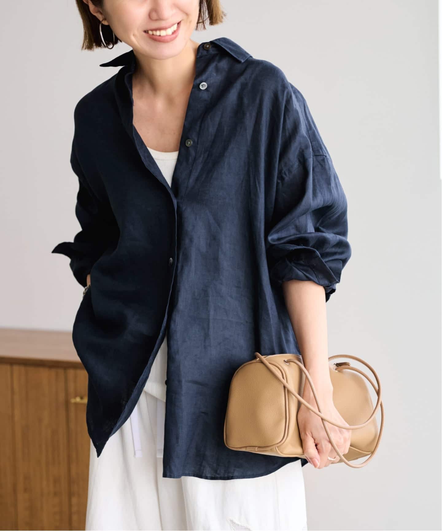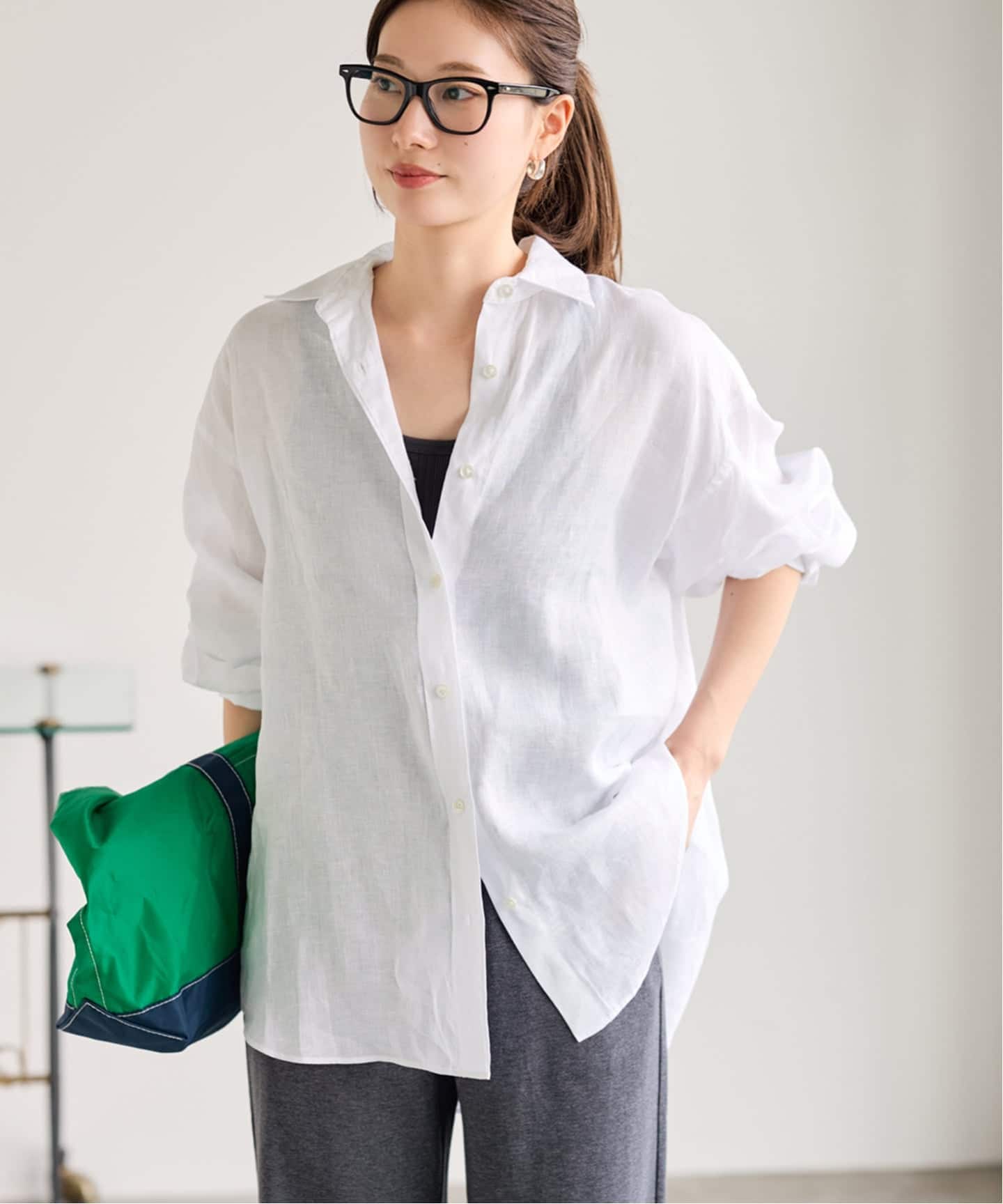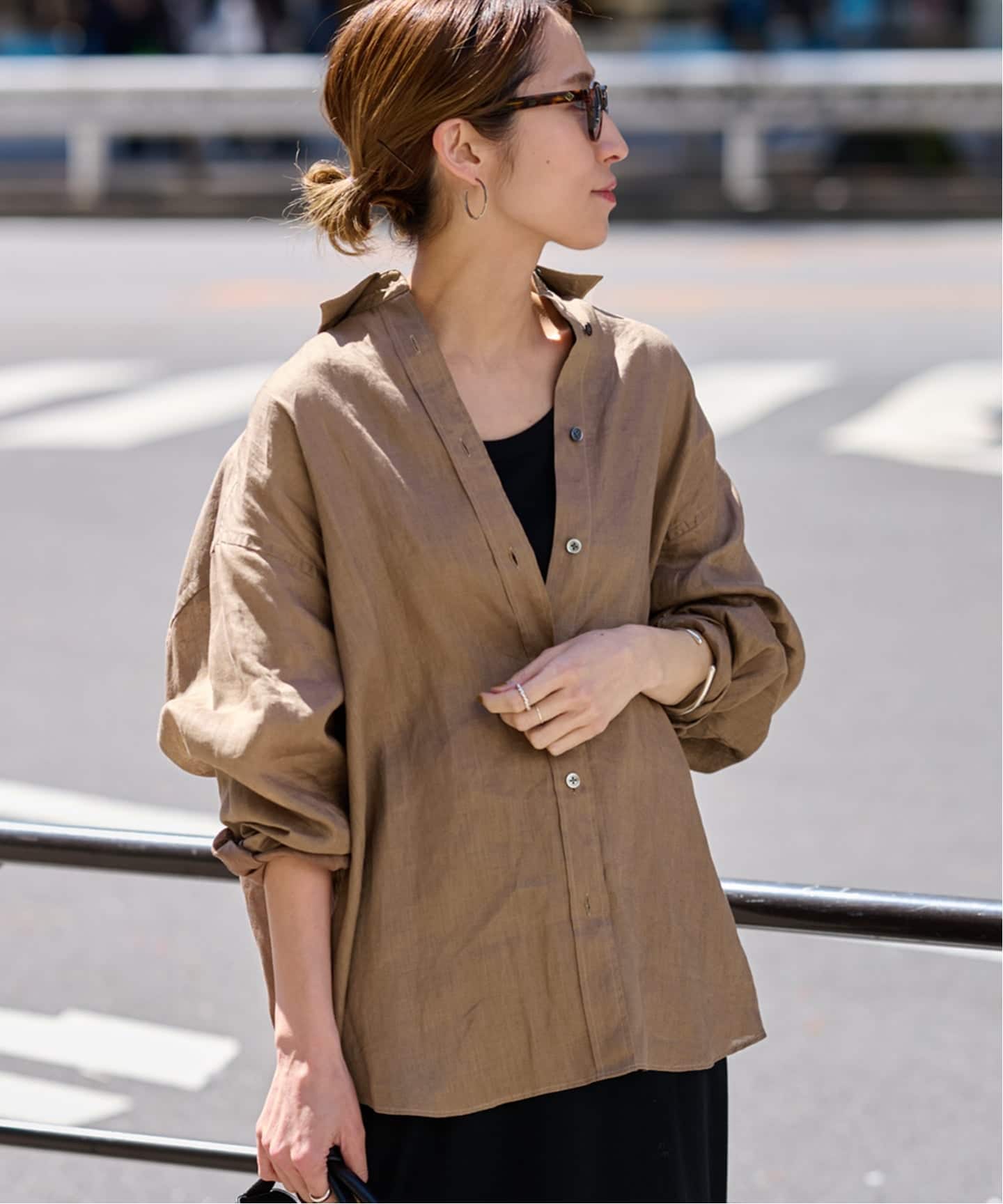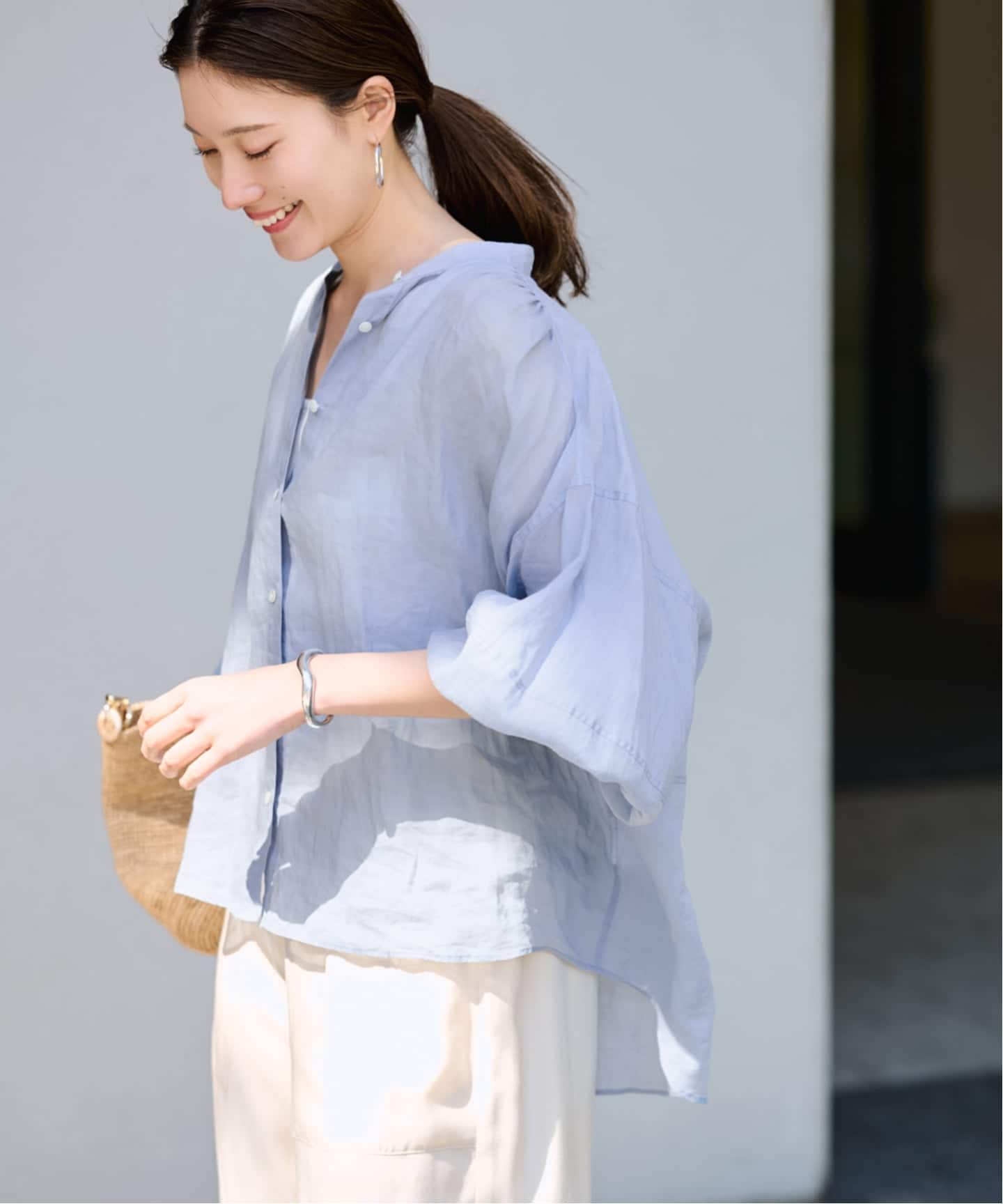 羽織りとしても活躍するリネン×コットンのブラウス。