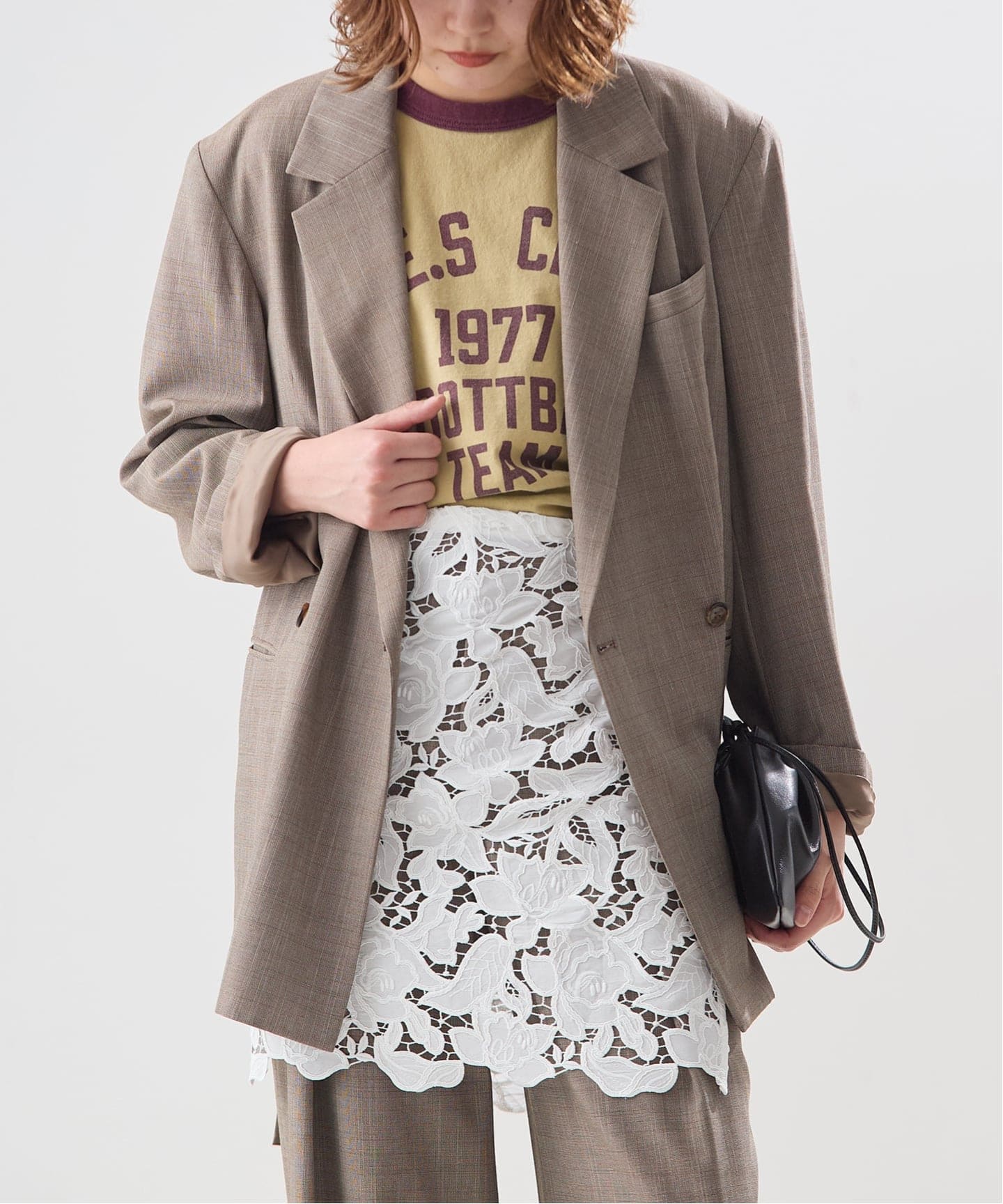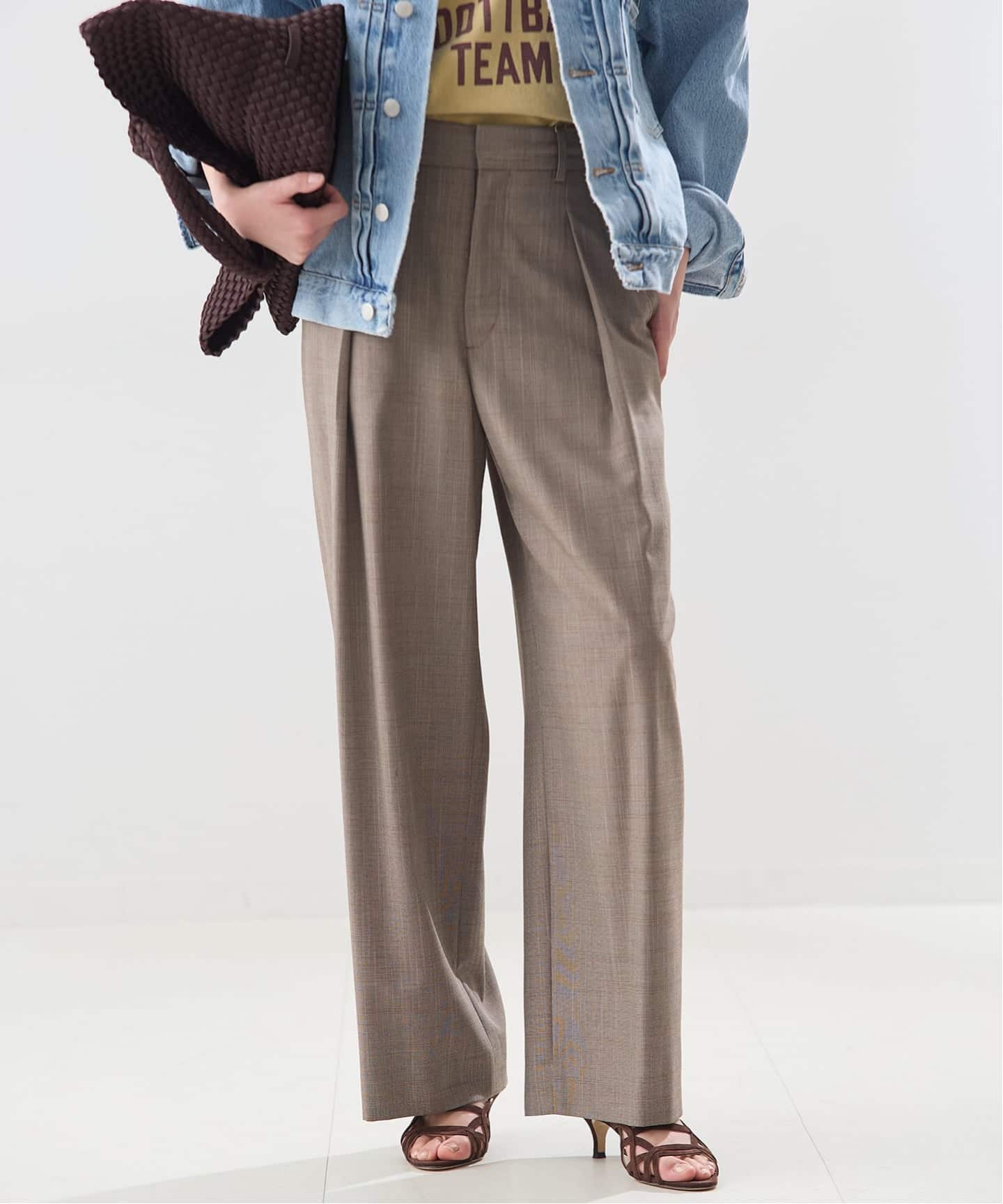 いつもと雰囲気を変えて、INSCRIREのレイヤードボトムスを合わせて鮮度あるスタイリングに。
