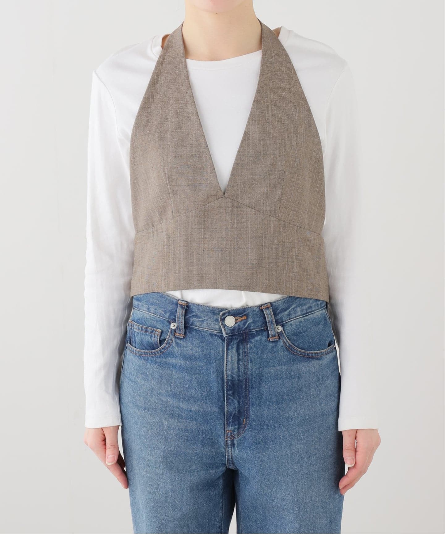 カシュクールにして動きを出すことで、オーバーサイズでもメリハリがつきます。