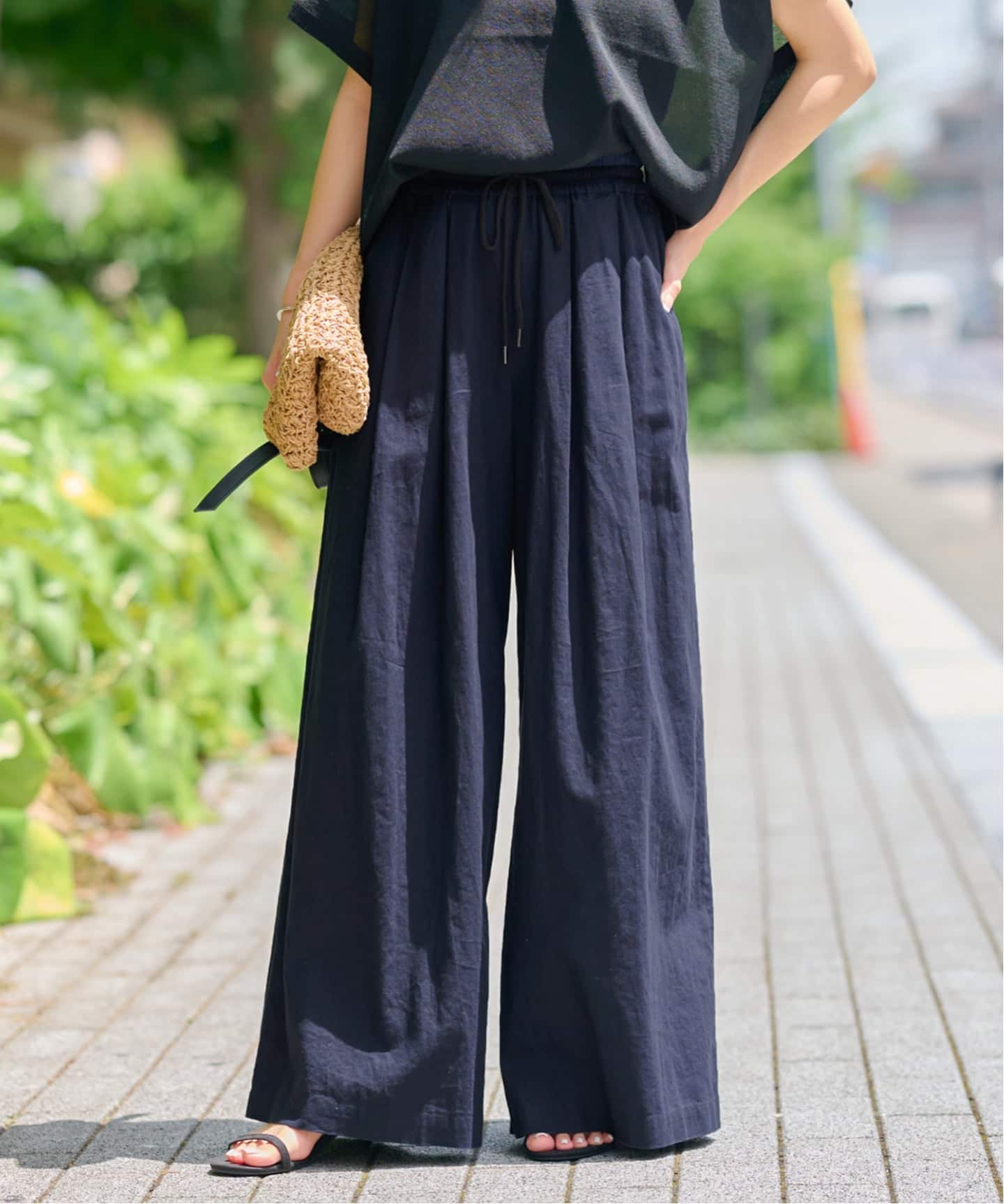《追加予約 / 新色》リネンコットンワイドギャザーパンツ