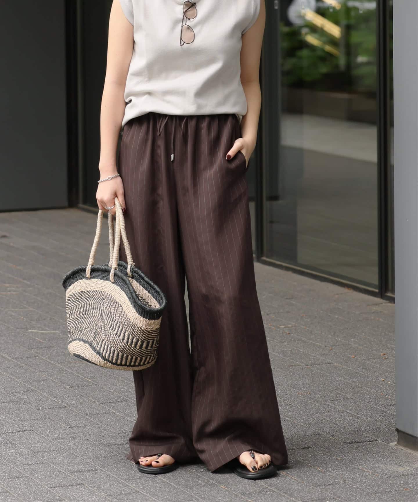 《予約》[26SS新作]コットンリネンタックワイドパンツ