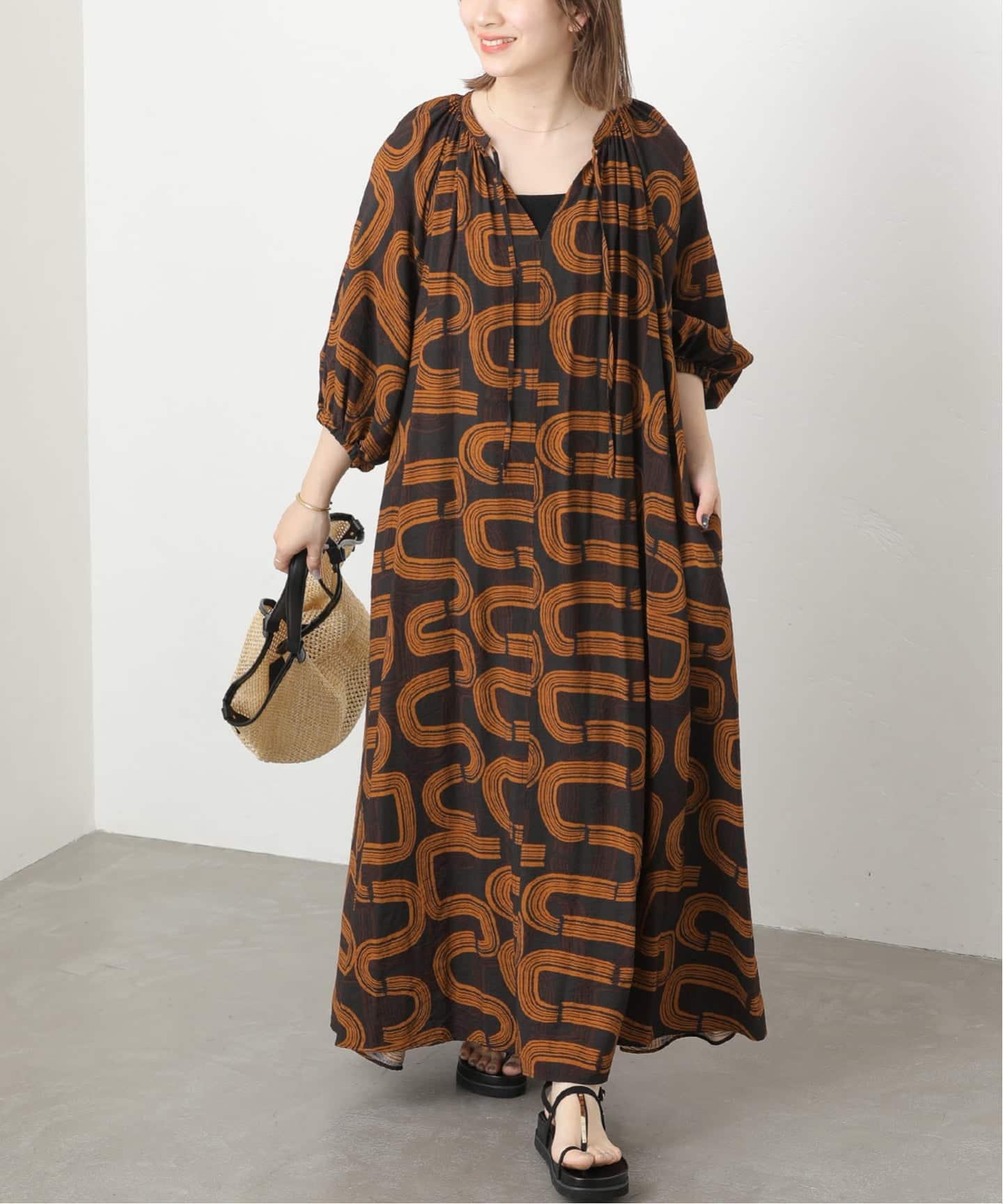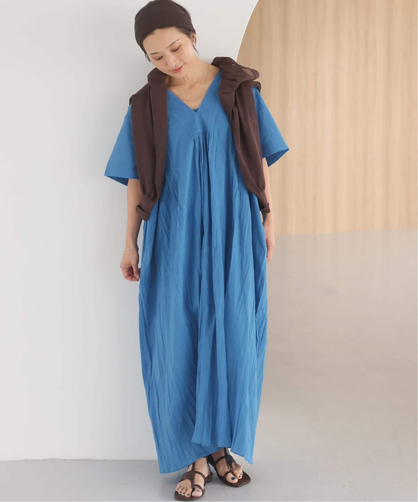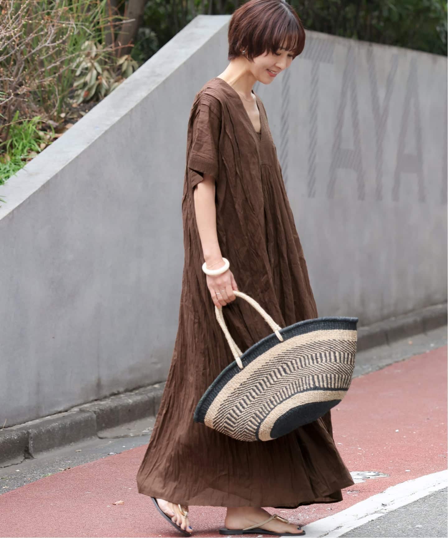 《追加予約 / 新色》コットンボイルクリンクルタックカフタンワンピース
