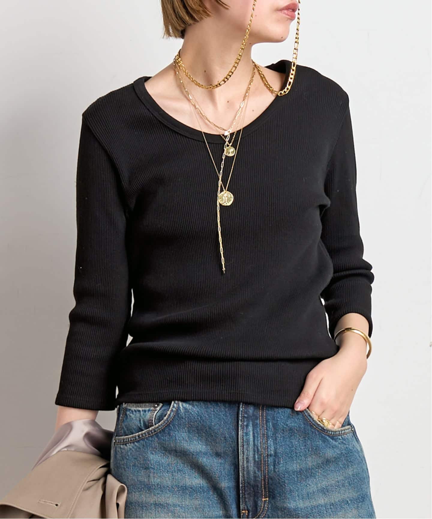 1枚着としてもインナーとしても使いやすい生地感が、今のシーズンにちょうどいい。
