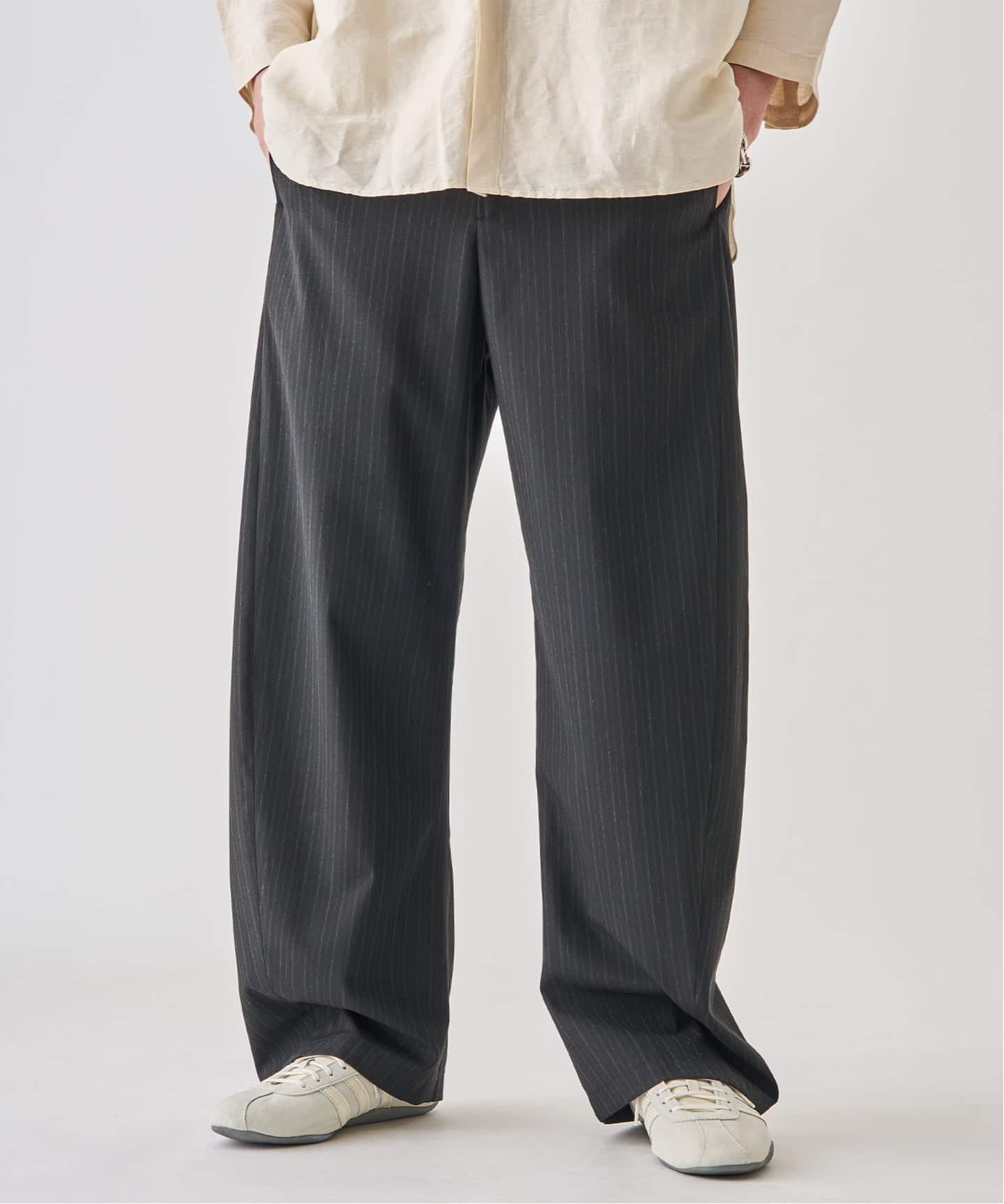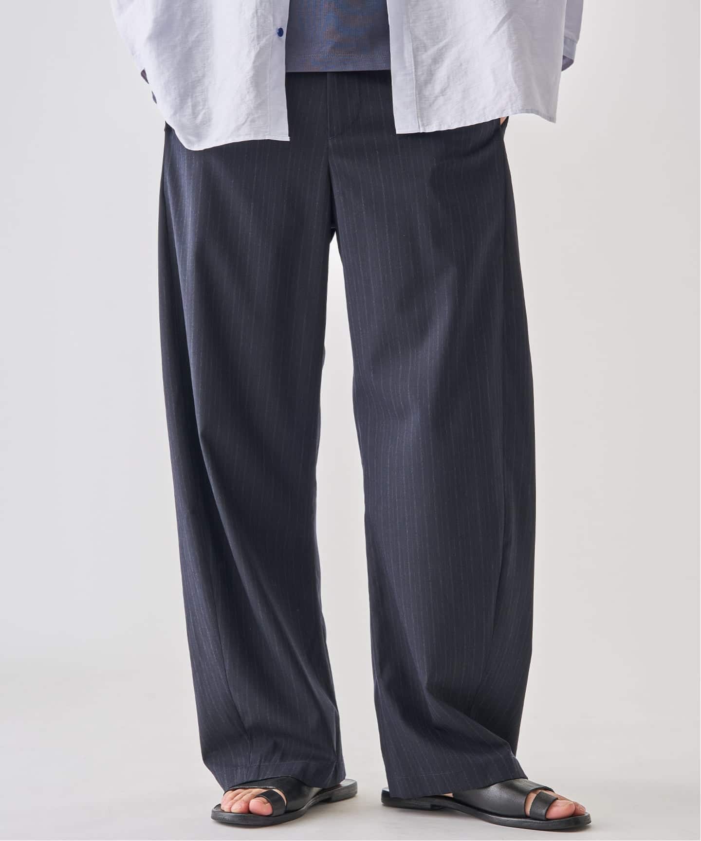 脇線を前に振った立体パターンにより、自然な3Dシルエットを実現。どの角度から見ても美しく、洗練された印象に仕上がります。程よいハリのある生地と上品なストライプ柄で、シャープな雰囲気を演出。ウエスト後ろはゴム仕様で穿き心地も快適。ストレッチ性と防シワ性を備え、カジュアルからきれいめまで幅広く活躍する一本です。