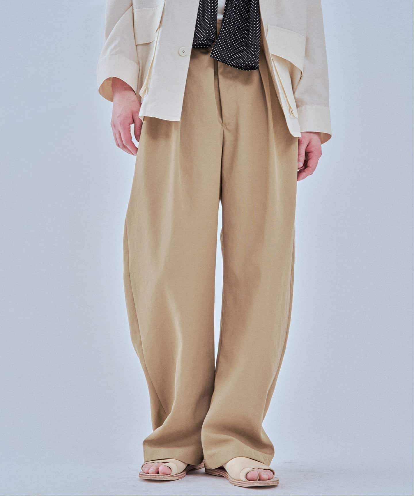 ウールライクな上品素材で、カジュアルなベイカーパンツをきれいめにアップデート。落ち着いたグレー・ナチュラル・ベージュのカラーでミリタリー感を抑え、洗練された印象に。やや深めの股上で安心感のある穿き心地とスタイルアップを両立。サイドアジャスト付きでタックインも美しく決まり、リラックス感がありつつキレイめスタイルにも対応できる万能シルエットです。
