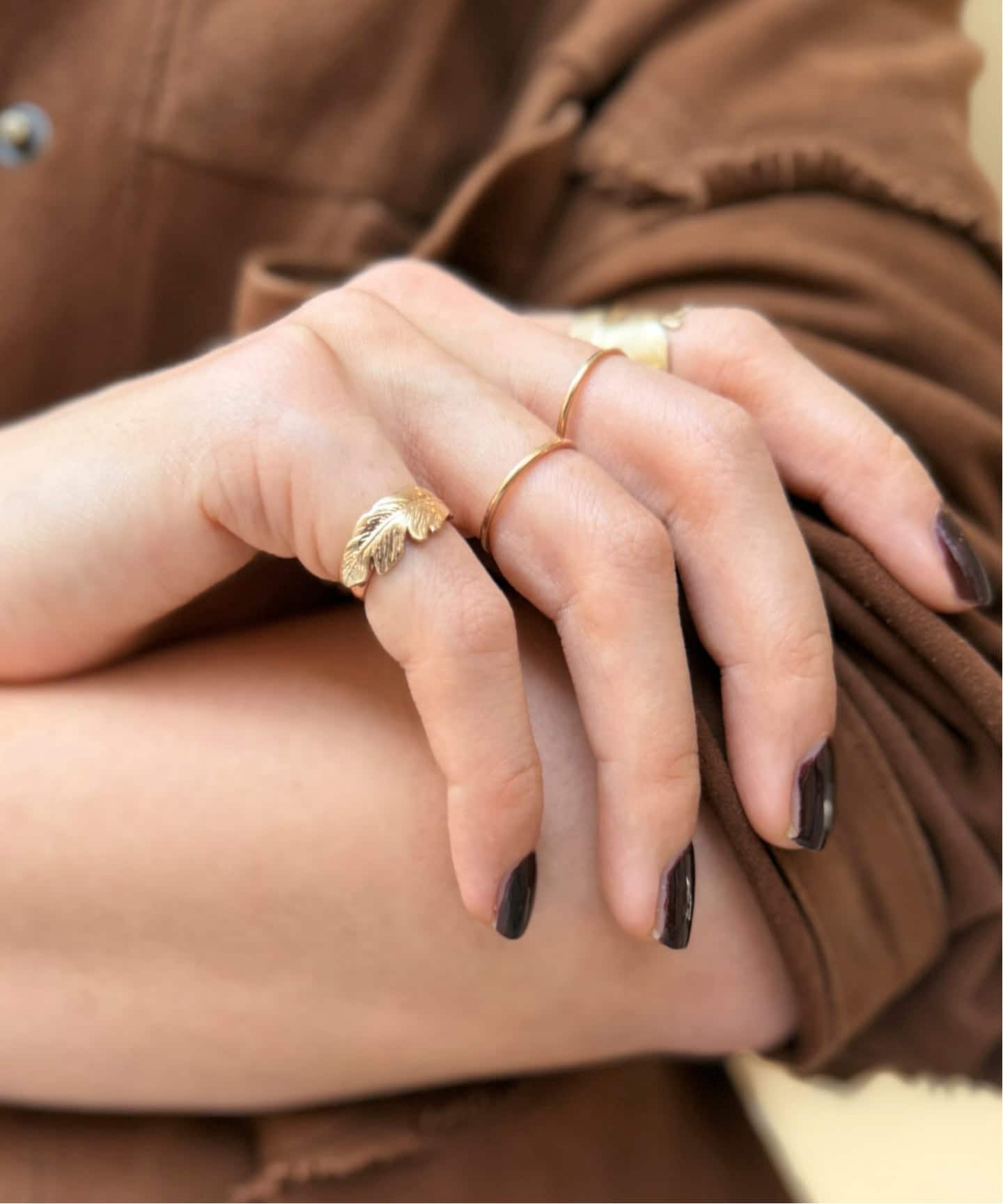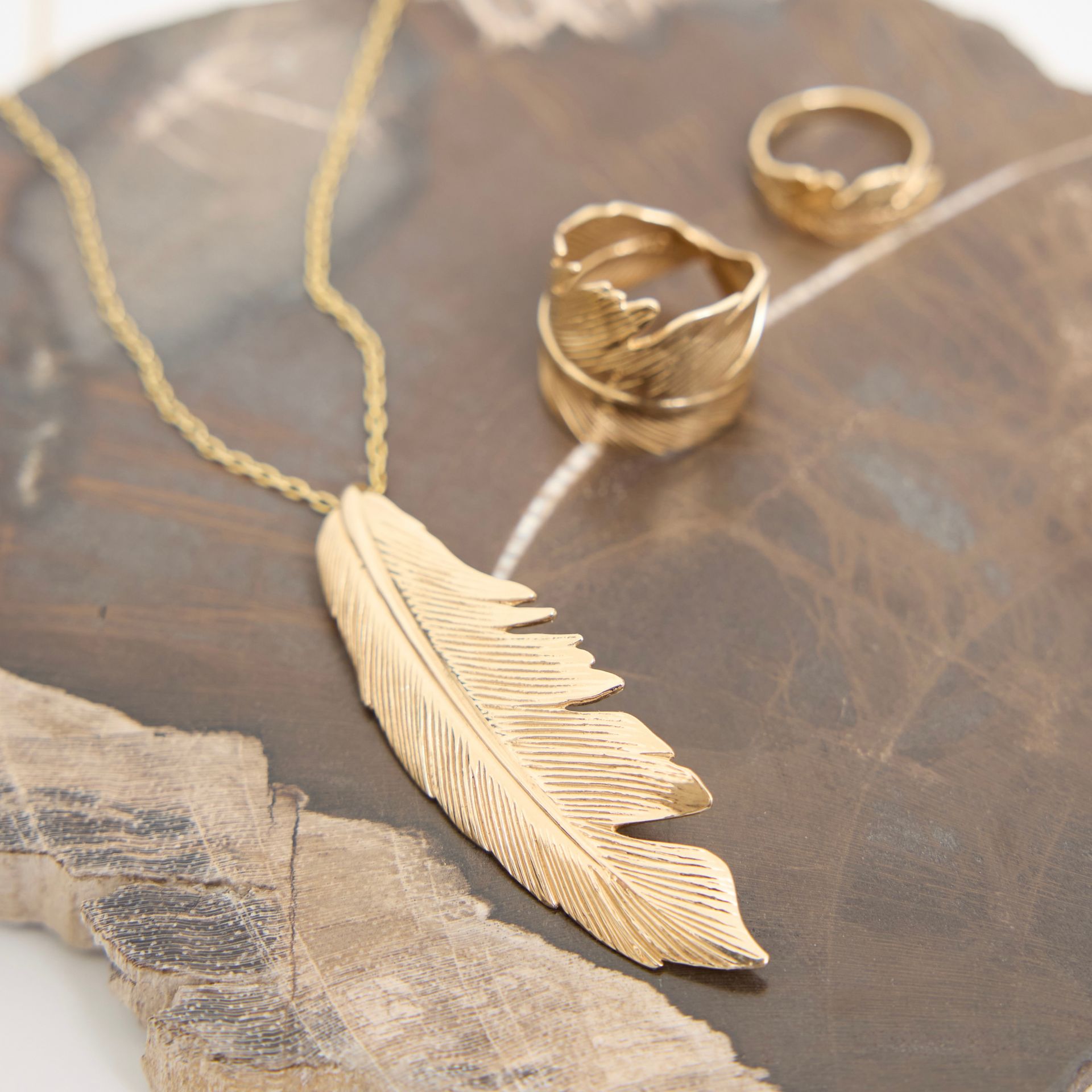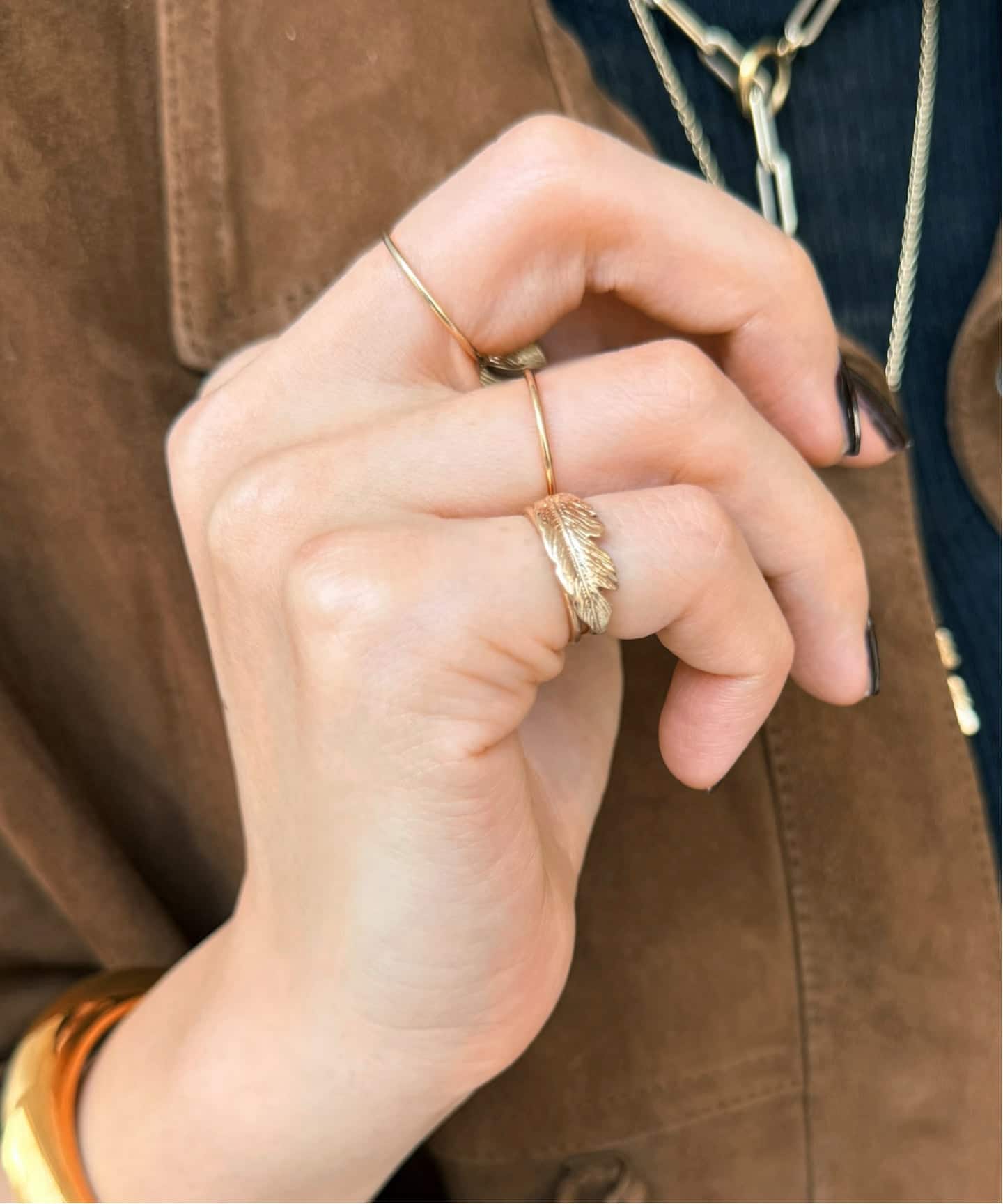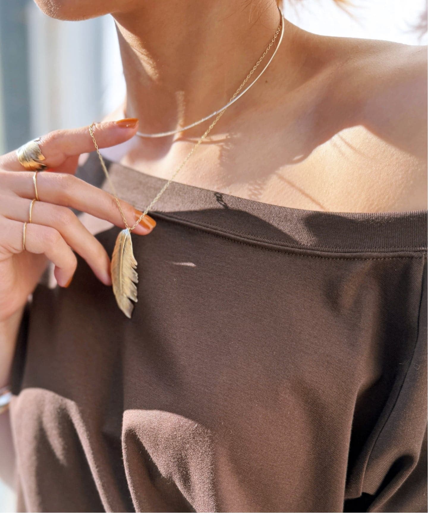 14KYGを使用し、ニューヨークで丁寧に手彫りで作られる温かみのあるデザインは全て自然からインスパイアされています。お守りのように身につけたいフェザーデザインはその独特の雰囲気がシンプルなスタイルからミックススタイルまでマッチする、スタッフの愛用者も多い人気のアイテム。