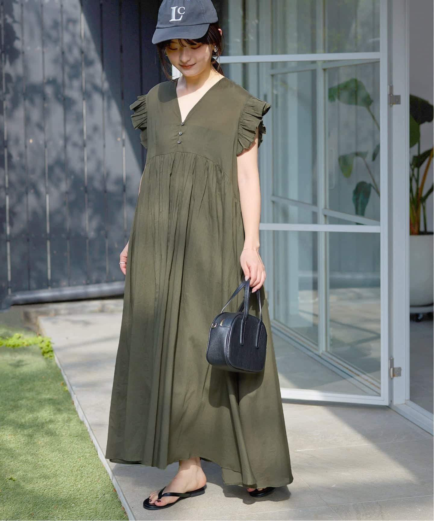袖のフリルが二の腕を華奢み見えさせながらポイントになります◎