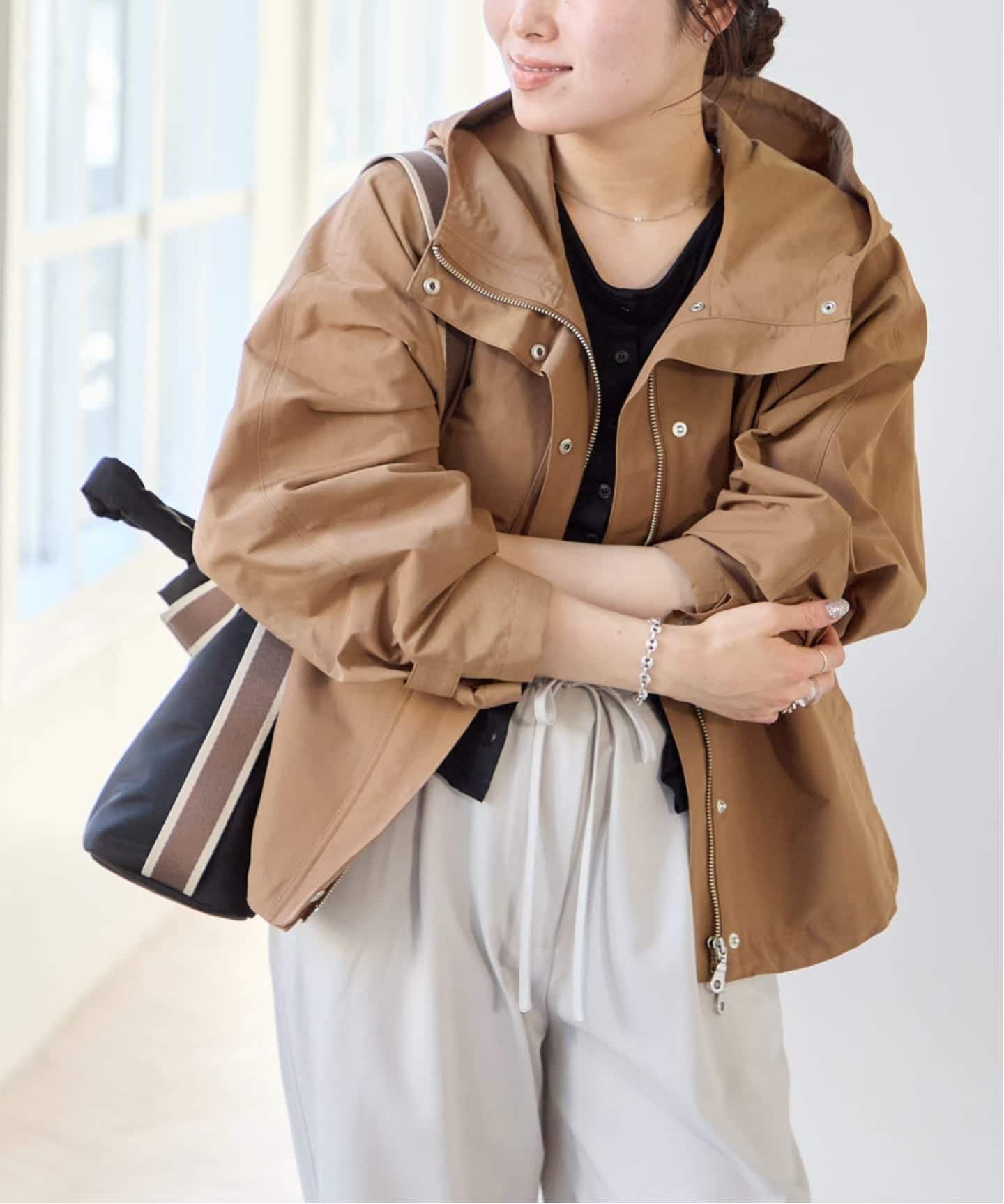 デニムやスラックス、スカートなど幅広いボトムと相性が良く、デイリーに活躍する一着です。