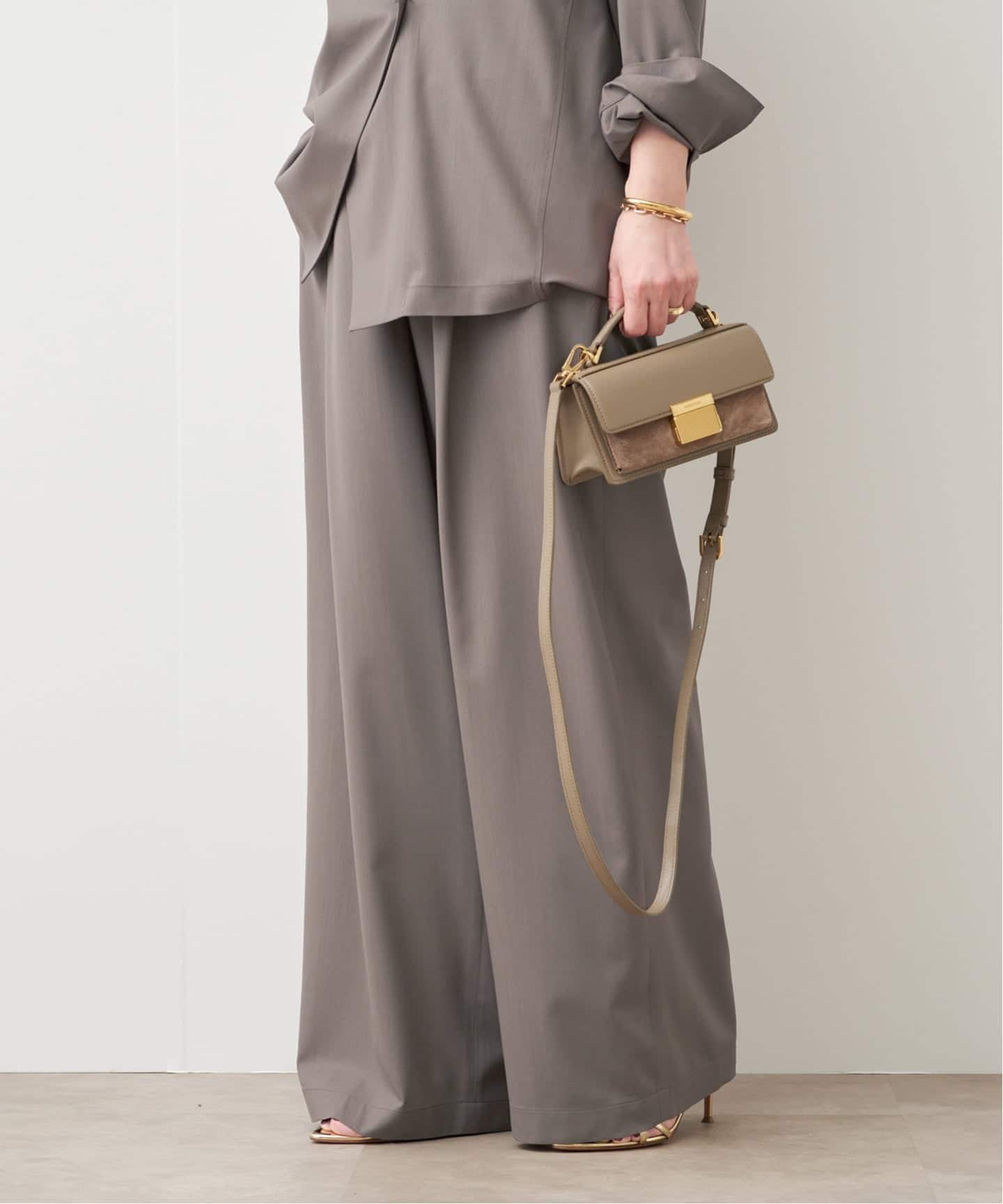 DeuxiemeClasseが得意とするニュアンスカラーのスタイルにぴったりな色味に、さりげないアクセントに効く素材。