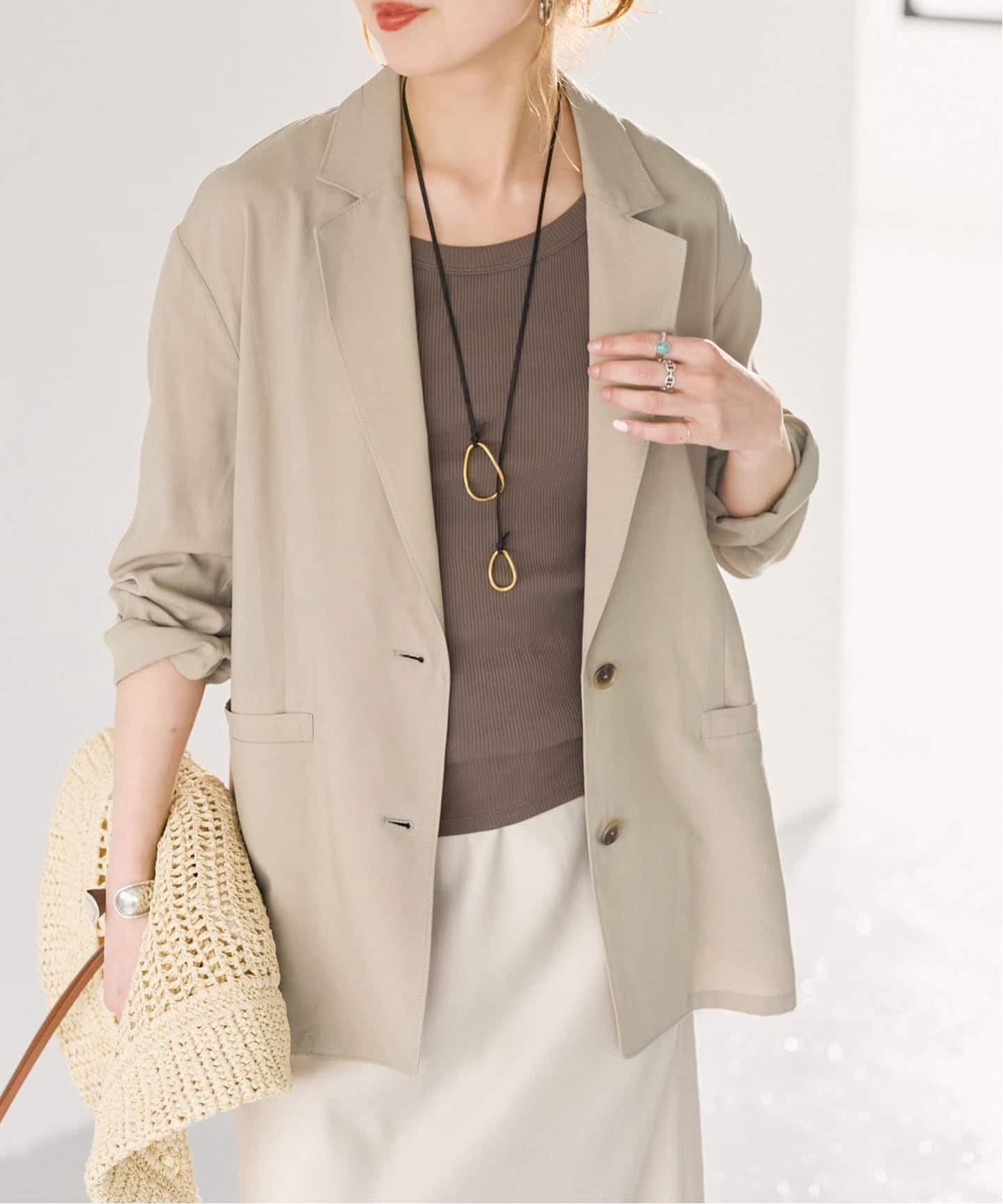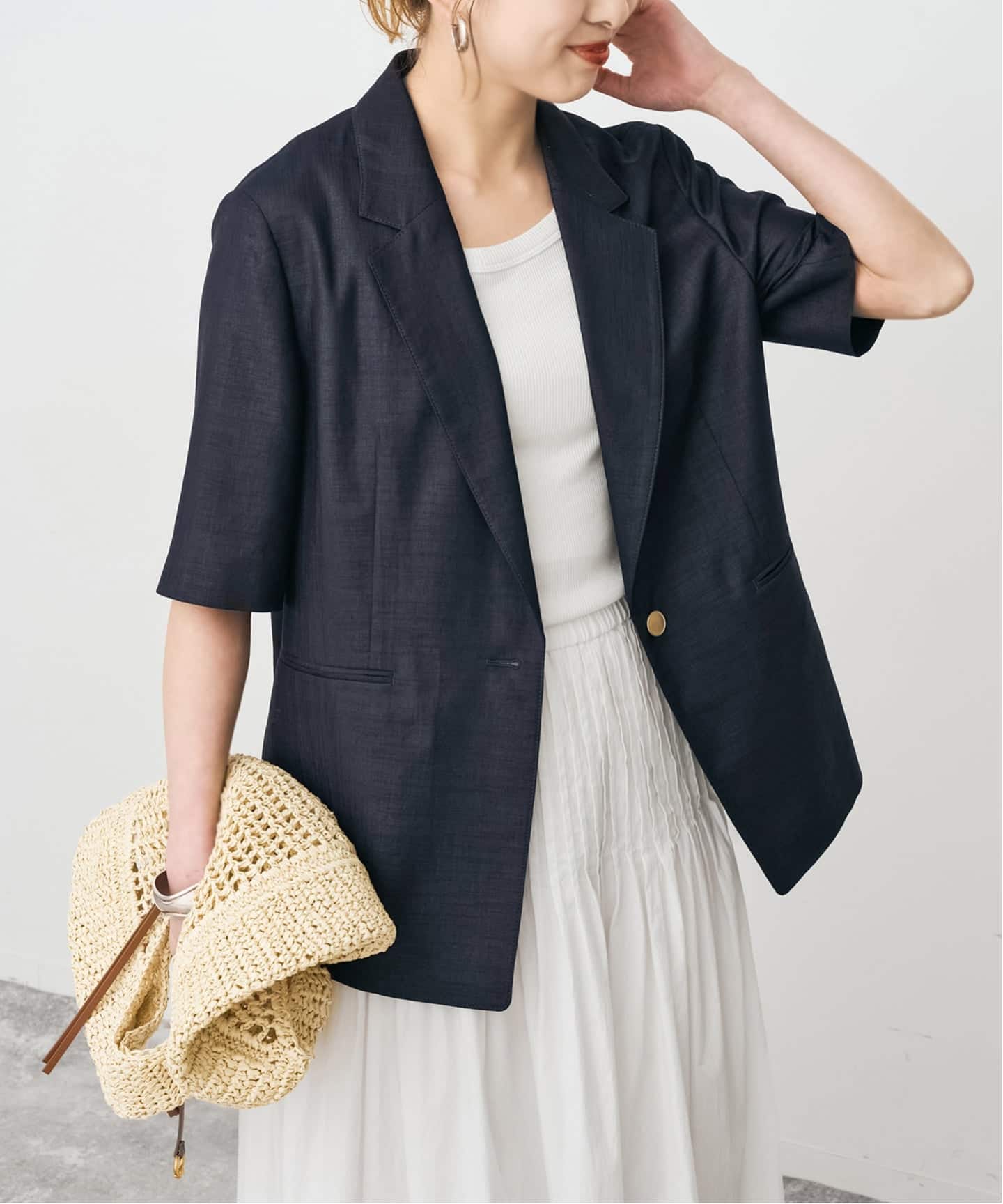 ジャケットは、肘にかかるくらいの長めの袖丈なので、気になる二の腕周りもさりげなくカバーしてくれます。