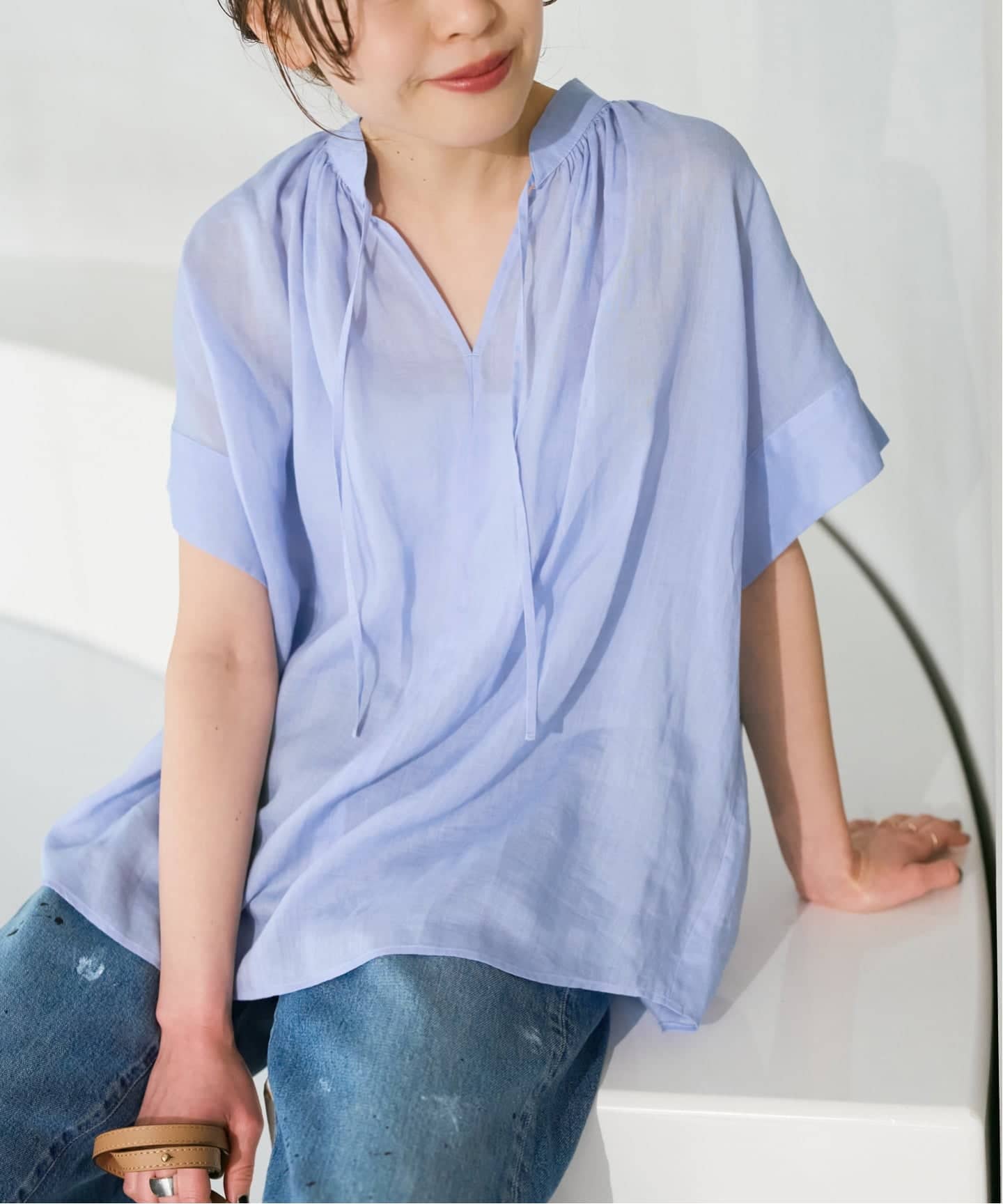 清涼感のある絡み織のリネンで仕上げたシアー感のあるトップスで、