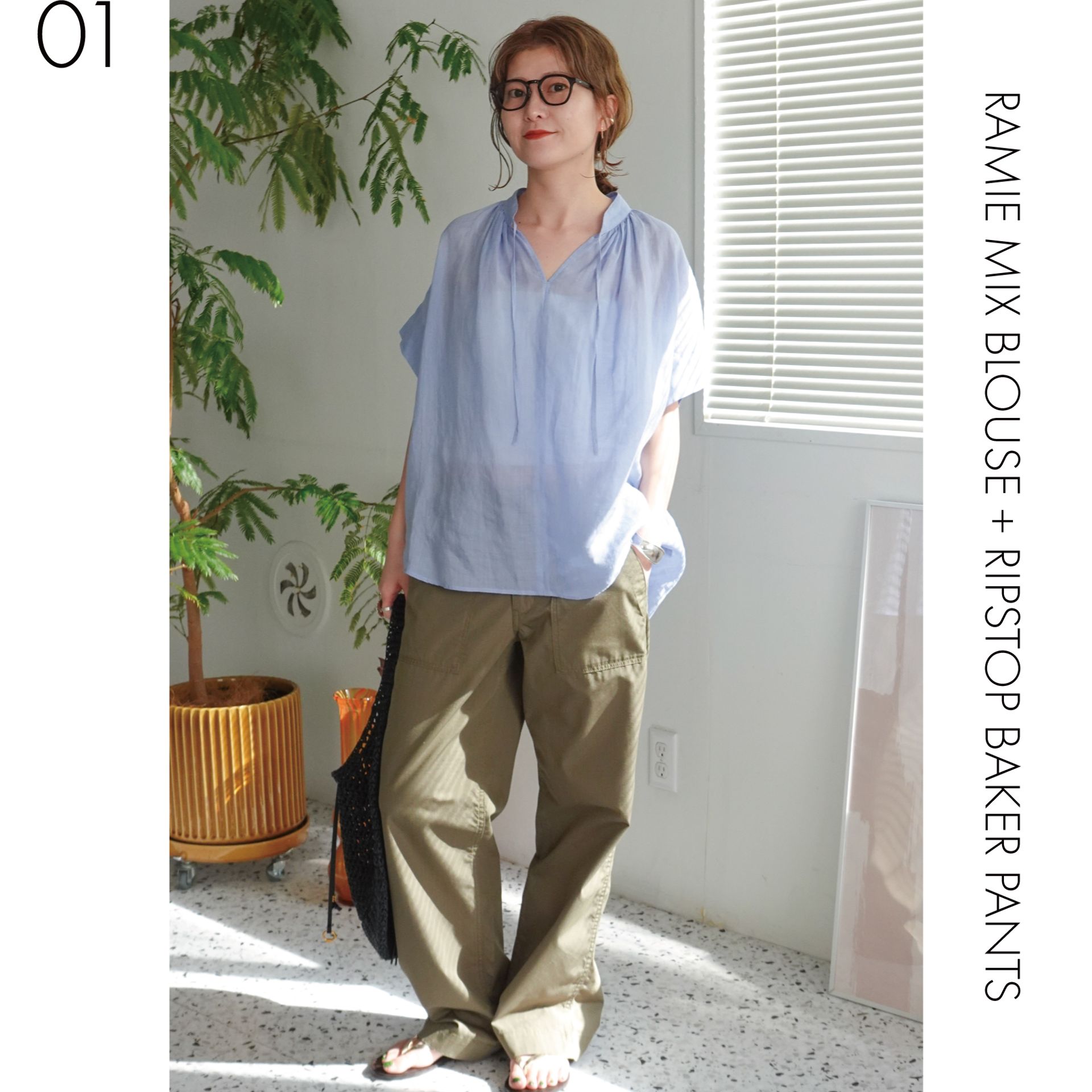 合わせたパンツは、大人気のルーズベイカーパンツの夏仕様アイテム。