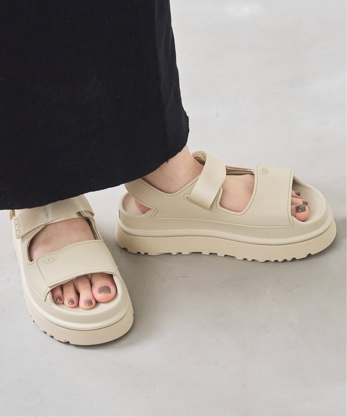 縦横にクロスするカーヴィなナローストラップが、足元をすっきり見せてくれるサンダル。足首のストラップはゴム仕様なので着脱も楽ちんなところも嬉しいポイント◎素足で履くのはもちろん、シアーソックスなどとレイヤードするのもおすすめです。