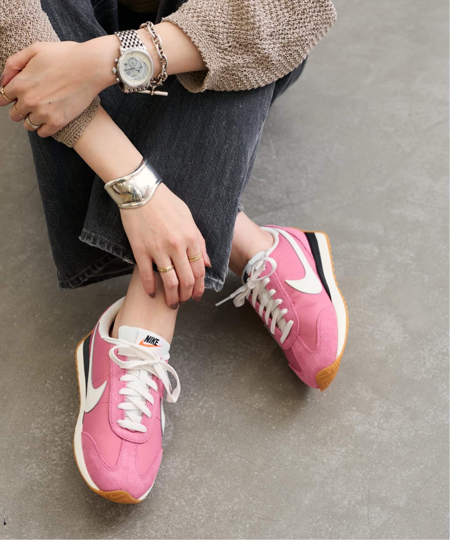 バレエシューズのように履けて、スニーカー感覚の履き心地が嬉しい1足。リボンのところがゴムになっていて、着脱が楽にできるところも嬉しいポイント。甘すぎない絶妙なピンクで、ダブルリボンのデザインがスタイリングのアクセントに♡