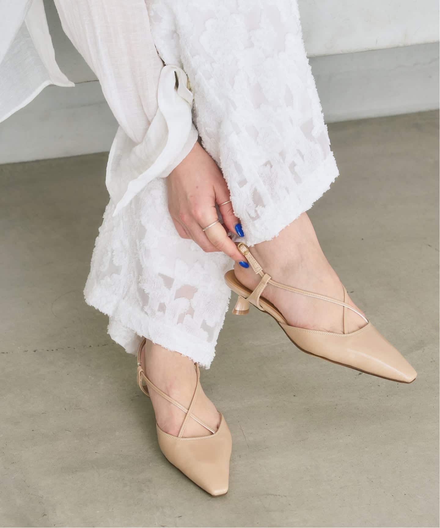 華奢なクロスコードが足元を美しく見せるストラップパンプス。