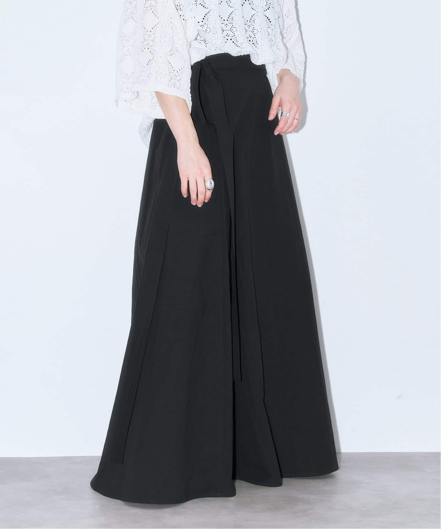 春夏に心地よく履ける、軽やかな素材感と、シンプルなトップスに合わせるだけで様になる新鮮なバランスのむラップデザイン。