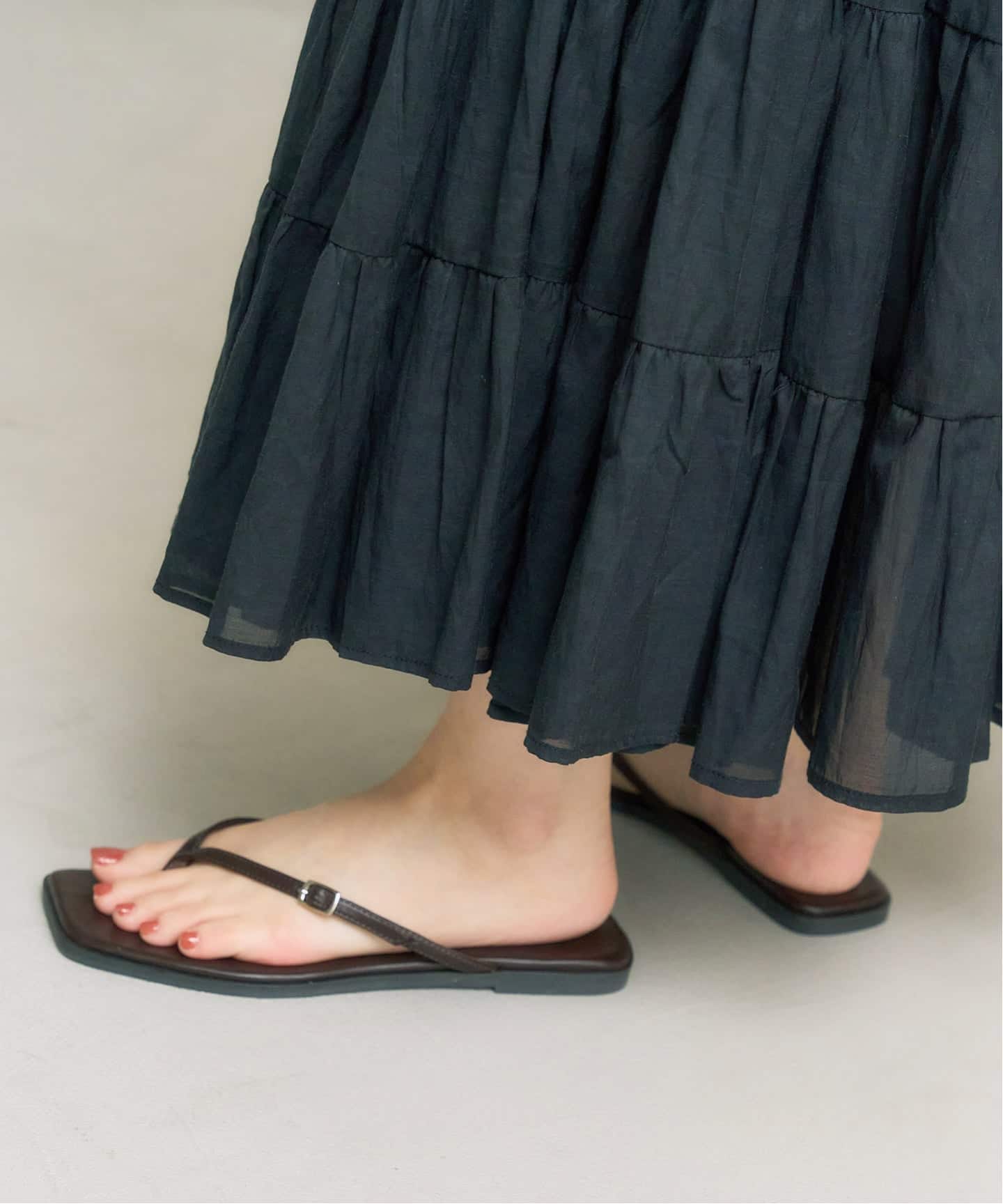 履くだけでヘルシーで品のある印象にまとめてくれる万能サンダル。
