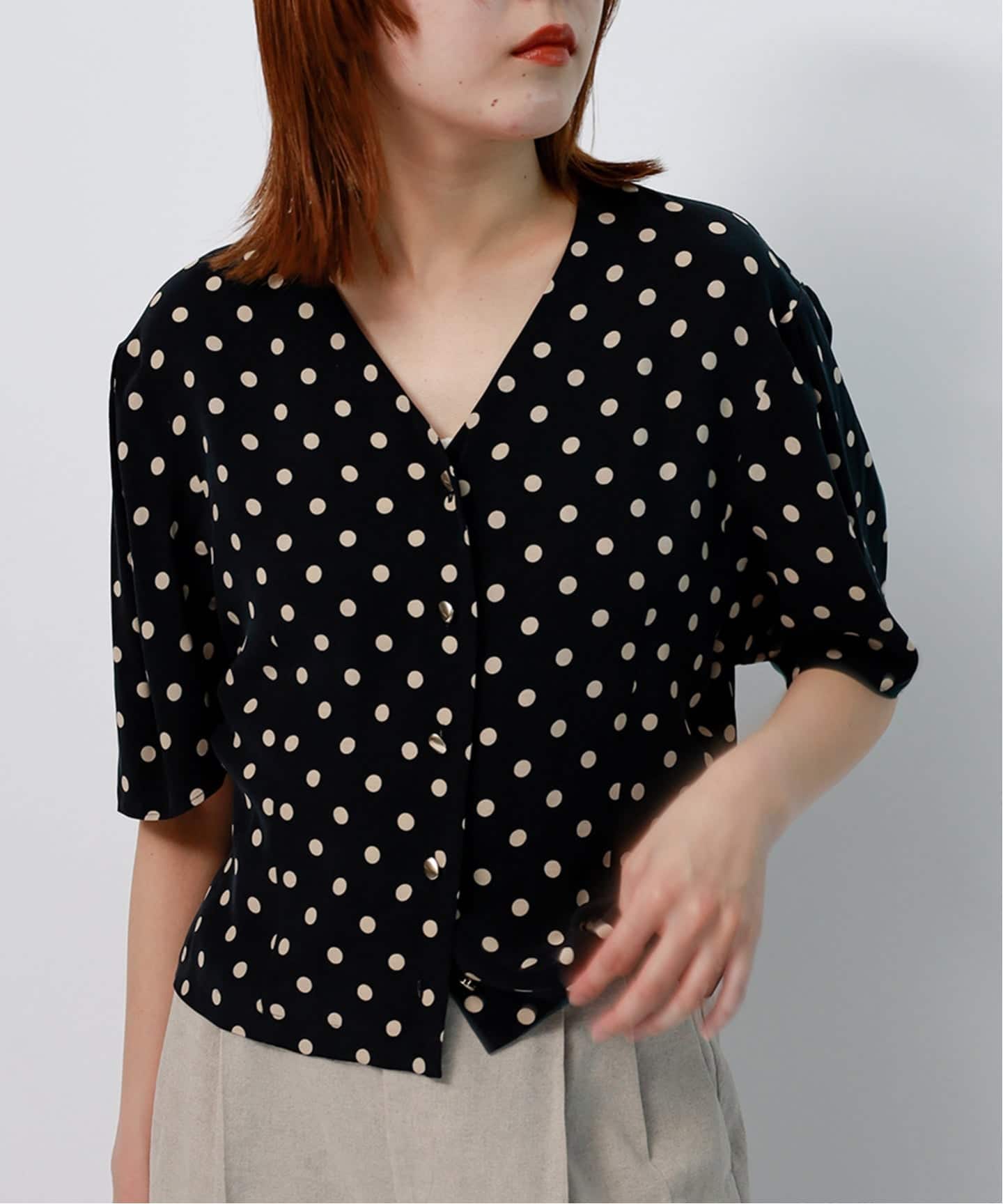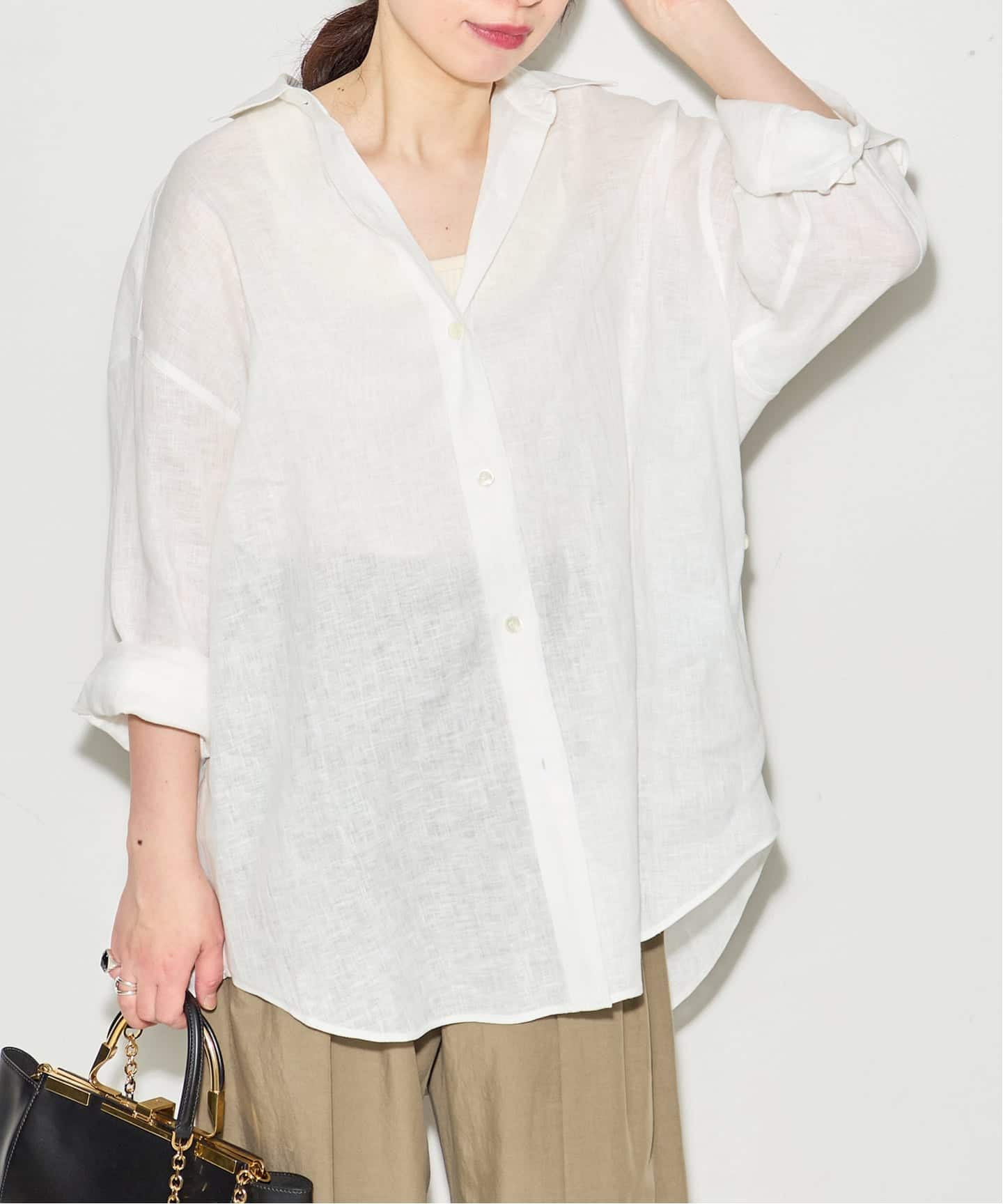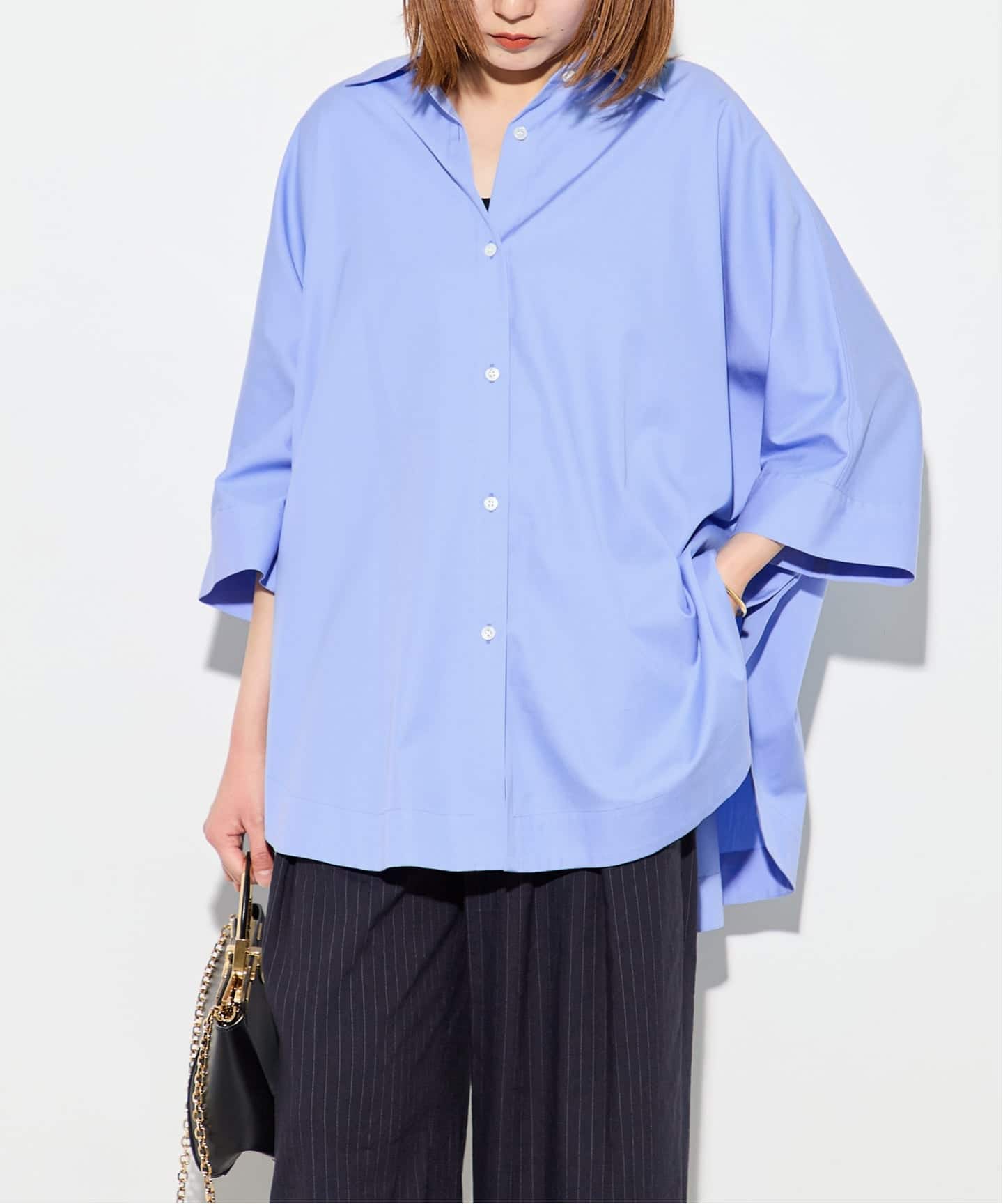 ラウンドカットが上品なドルマンシャツ。
