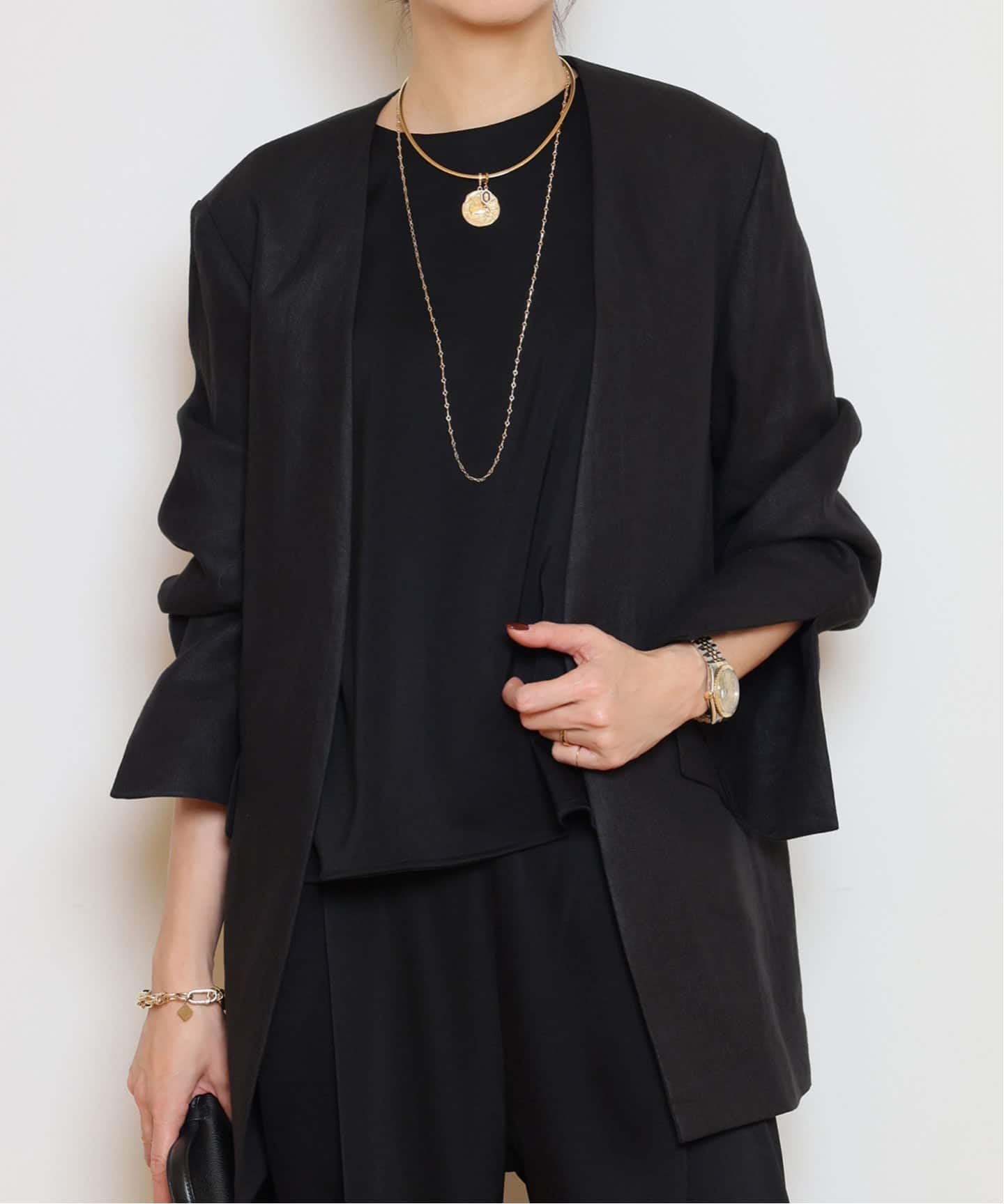【edit & co./エディット アンド コー】LINEN ノーカラージャケット
