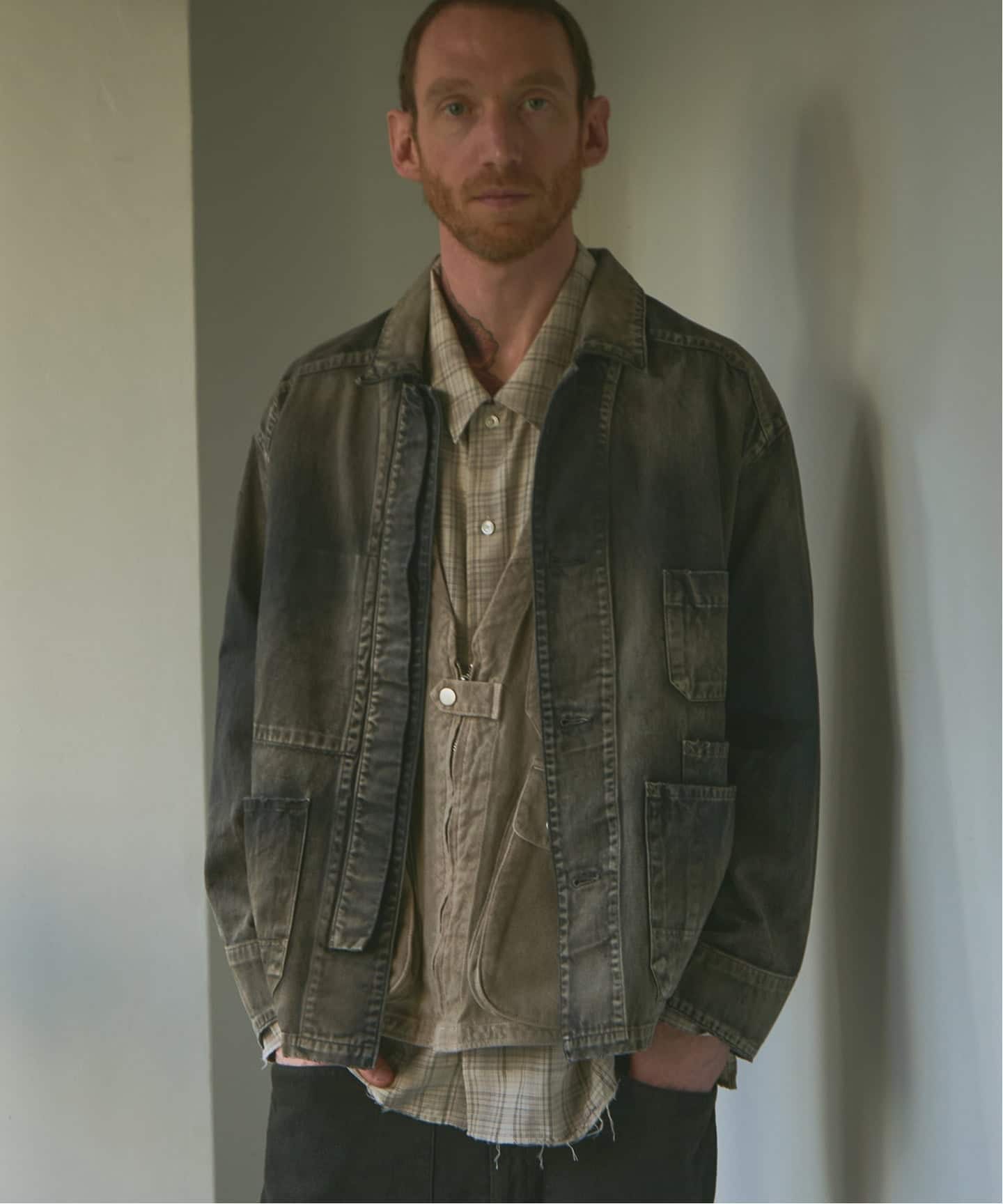 シルエットはヴィンテージワークジャケットのバランスをベースにしながら、緻密なパターンワークによって現代的に再構築。