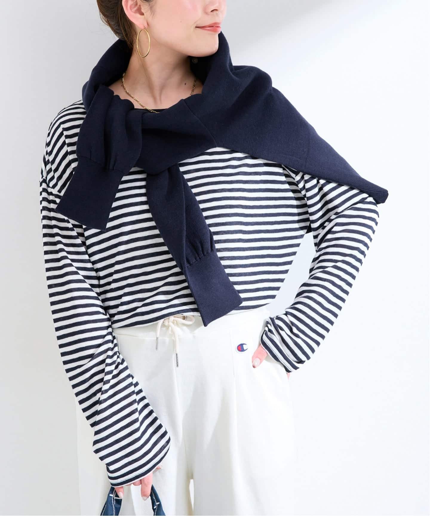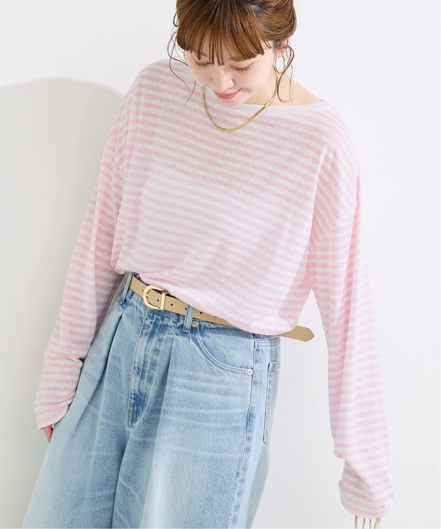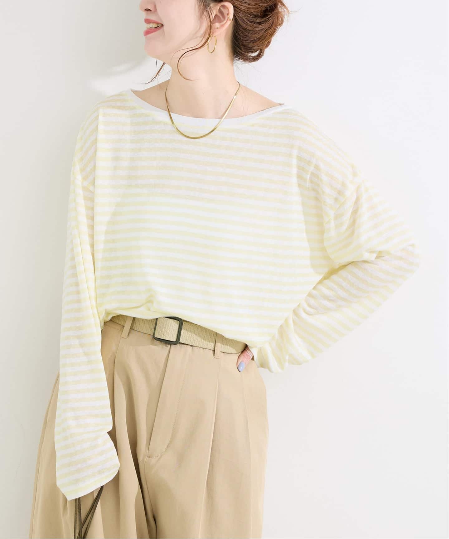 ライトなカラーが可愛らしいシアーボーダーロンTEE。