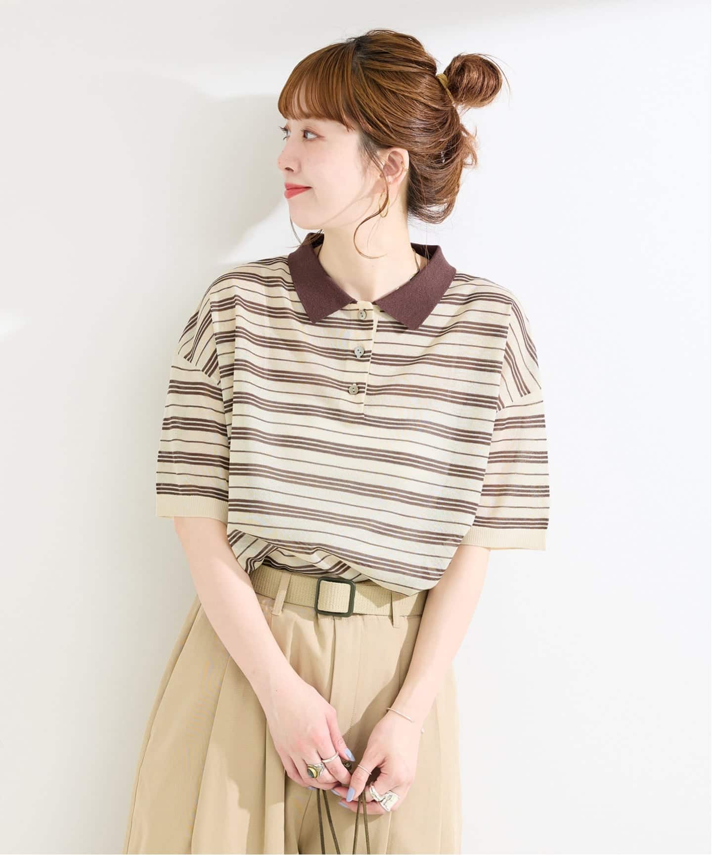 甘すぎず、でもキュートな印象を与える半袖ニットです。