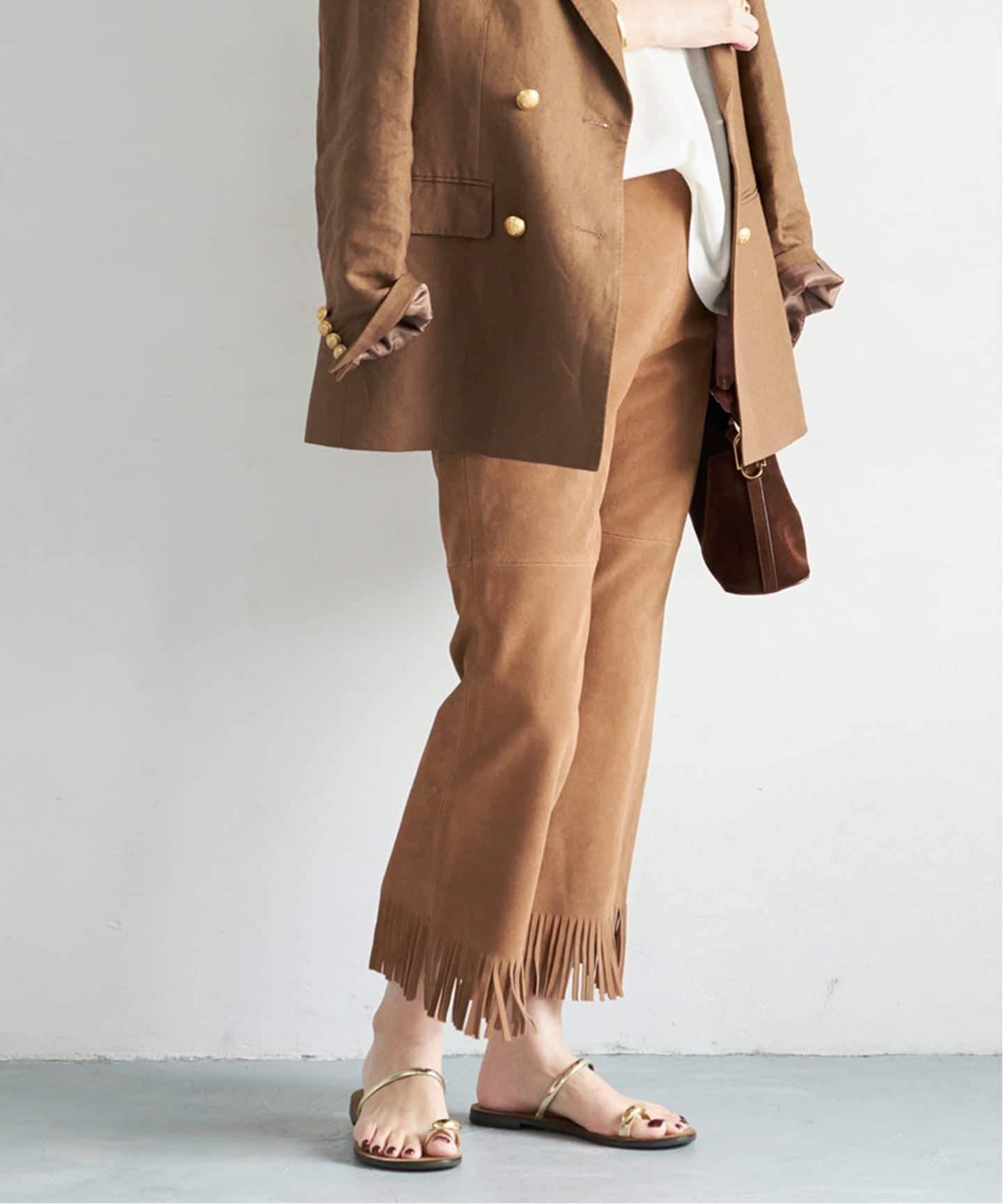 フリンジパンツはそれだけでスタイルを完成させる存在感を放つ1本。