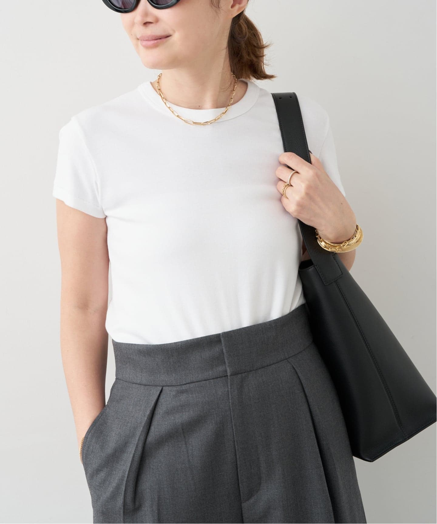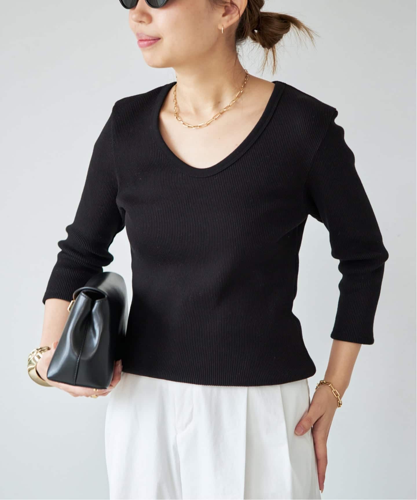 リブカットソーはカジュアルに寄りやすいアイテムだからこそこだわって大人の女性が上品に着用できる1枚に。