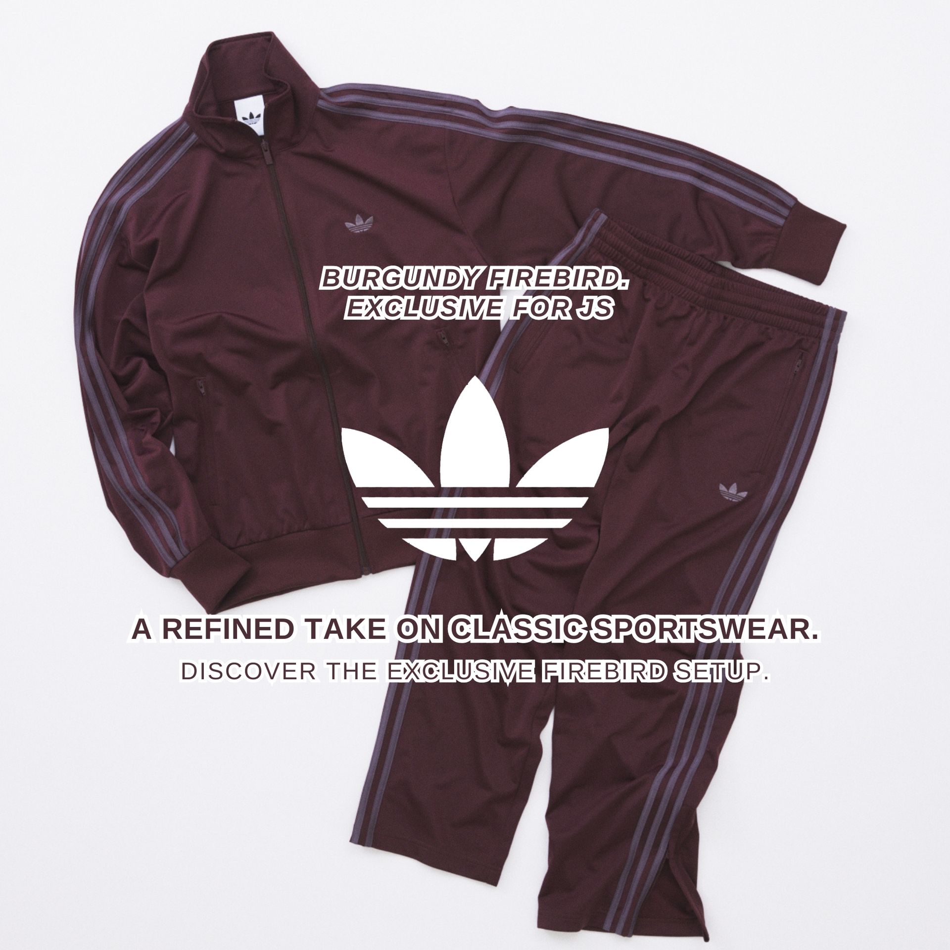 【adidas Originals ファイヤーバード】別注トラックジャケット&パンツ|セットアップで着れるバーガンディモデル