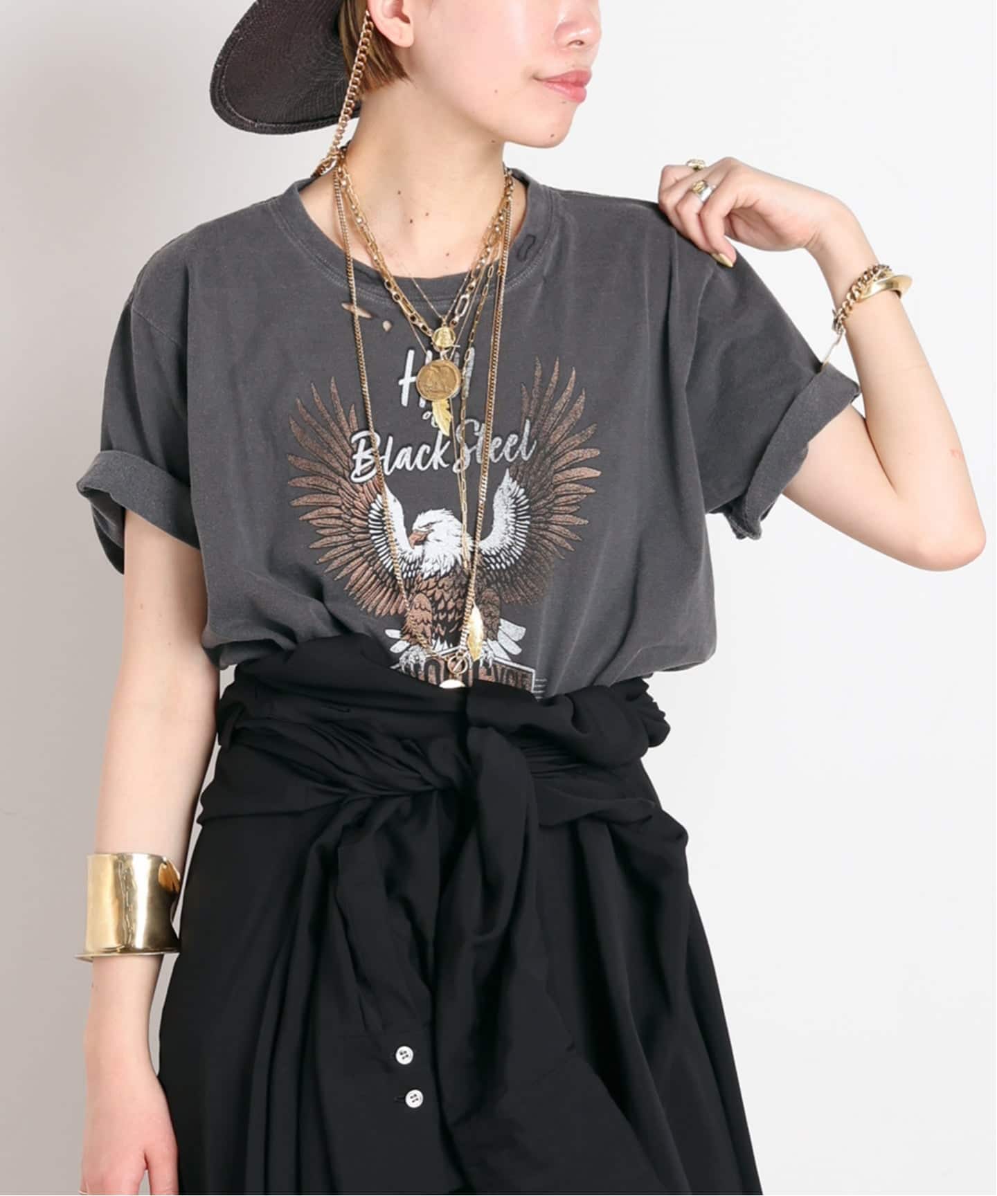 ネックにダメージ加工を施したdamageHill&black steel eagle Tシャツは、よりヴィンテージライクなニュアンスのある1枚。