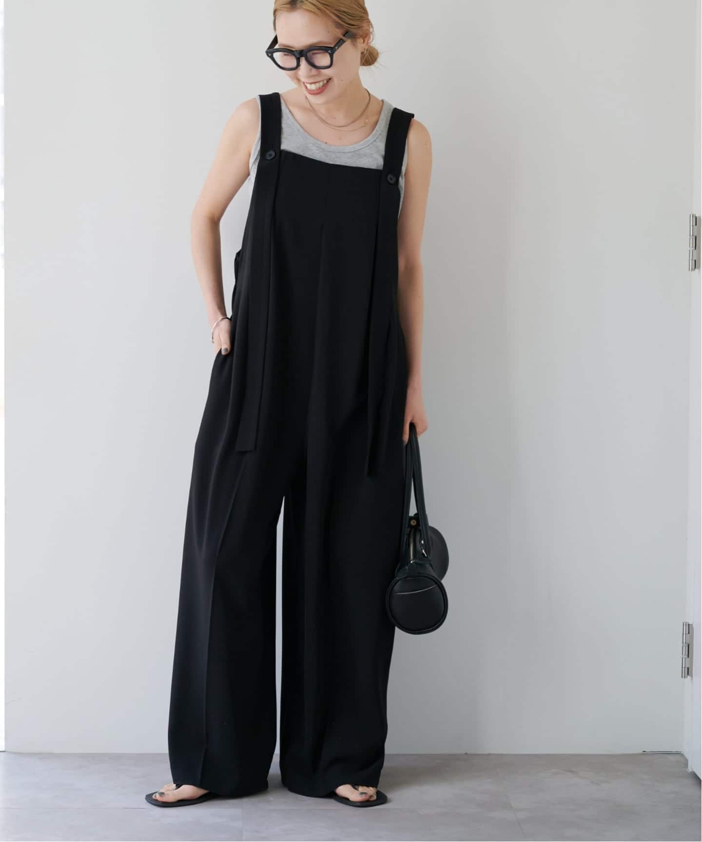 長めの肩紐ディテールにエプロン風のデザインがポイントです。