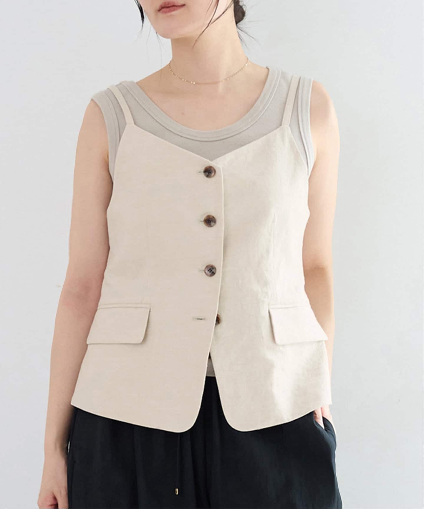 《セットアップ対応/予約》ウォッシャブル リネン混シェイプジレ