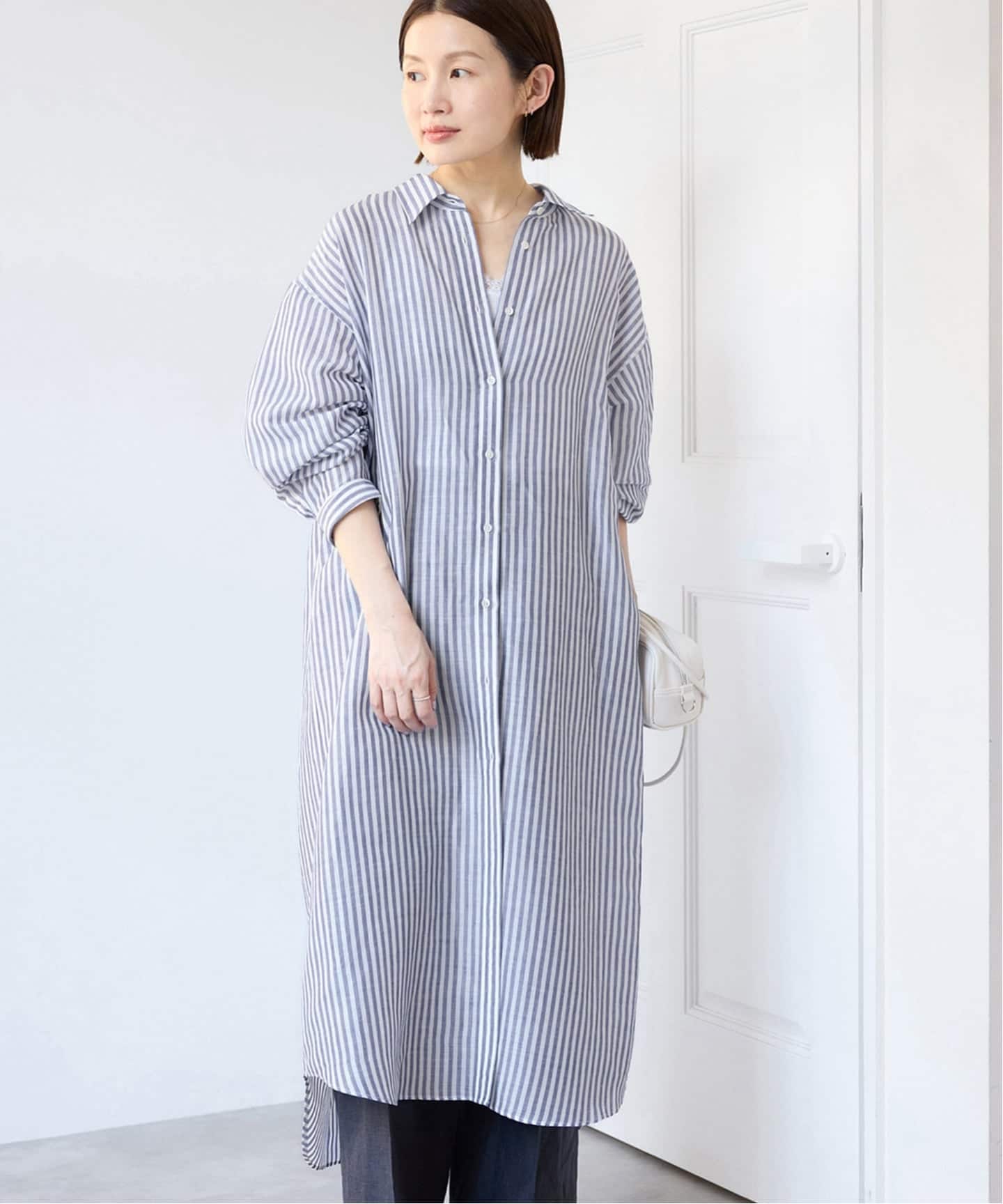 ラミーの清涼感とリヨセルのやわらかさを活かした、軽やかなシャツワンピース。
