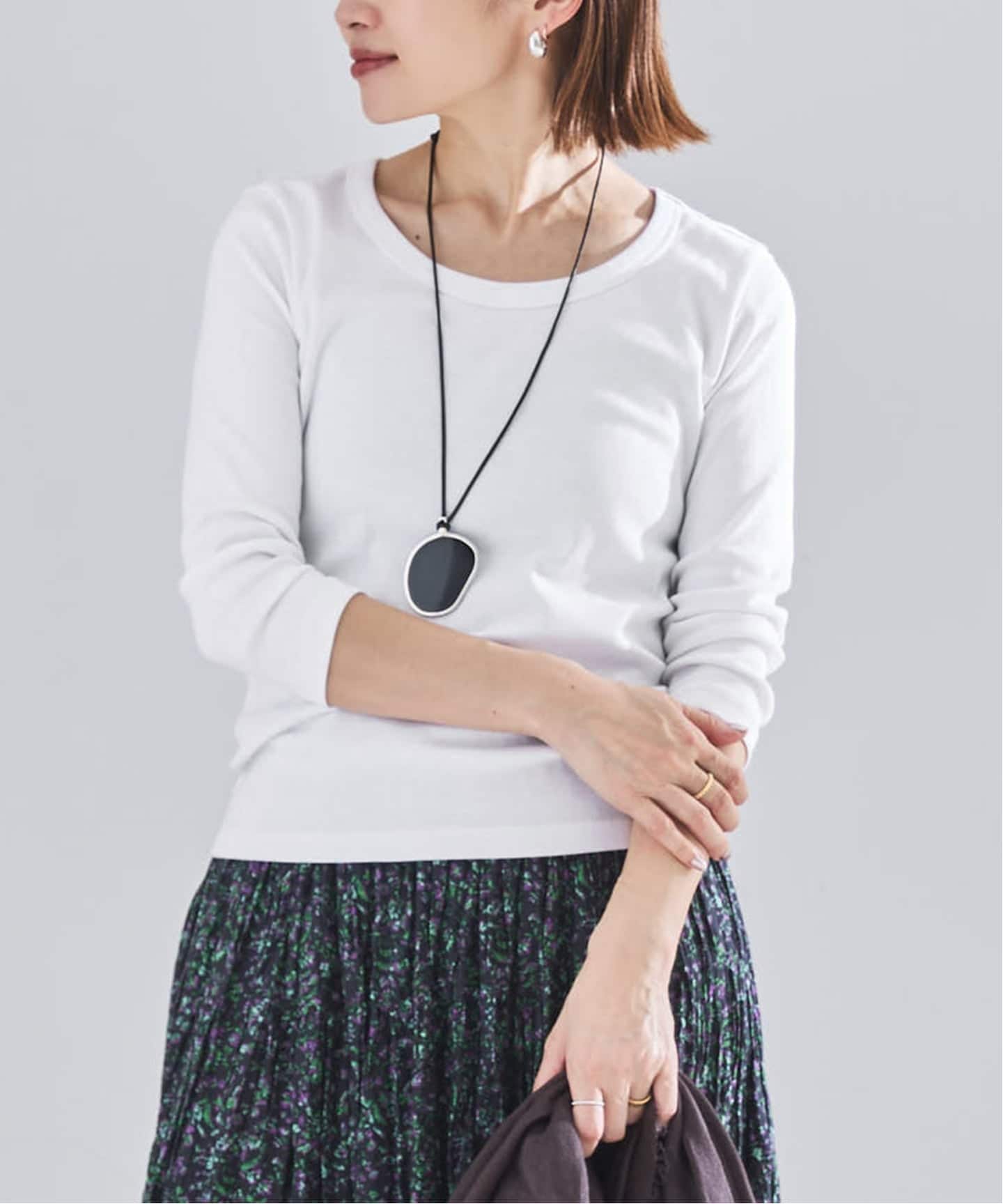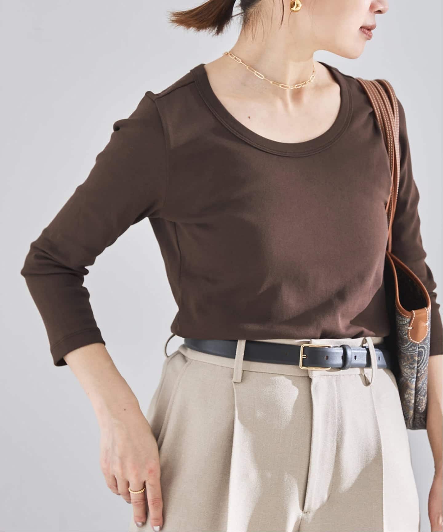 ほどよく開いたネックラインが女性らしく、一枚でもインナーでもすっきりと着こなせます。
