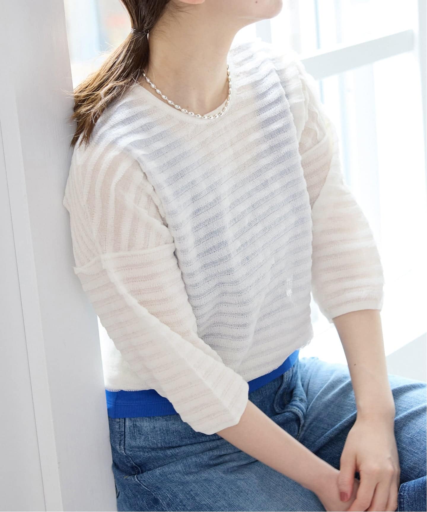 袖を折り返して配色を見せた着こなしも楽しめ、透けすぎずデイリーに取り入れやすい一枚です。