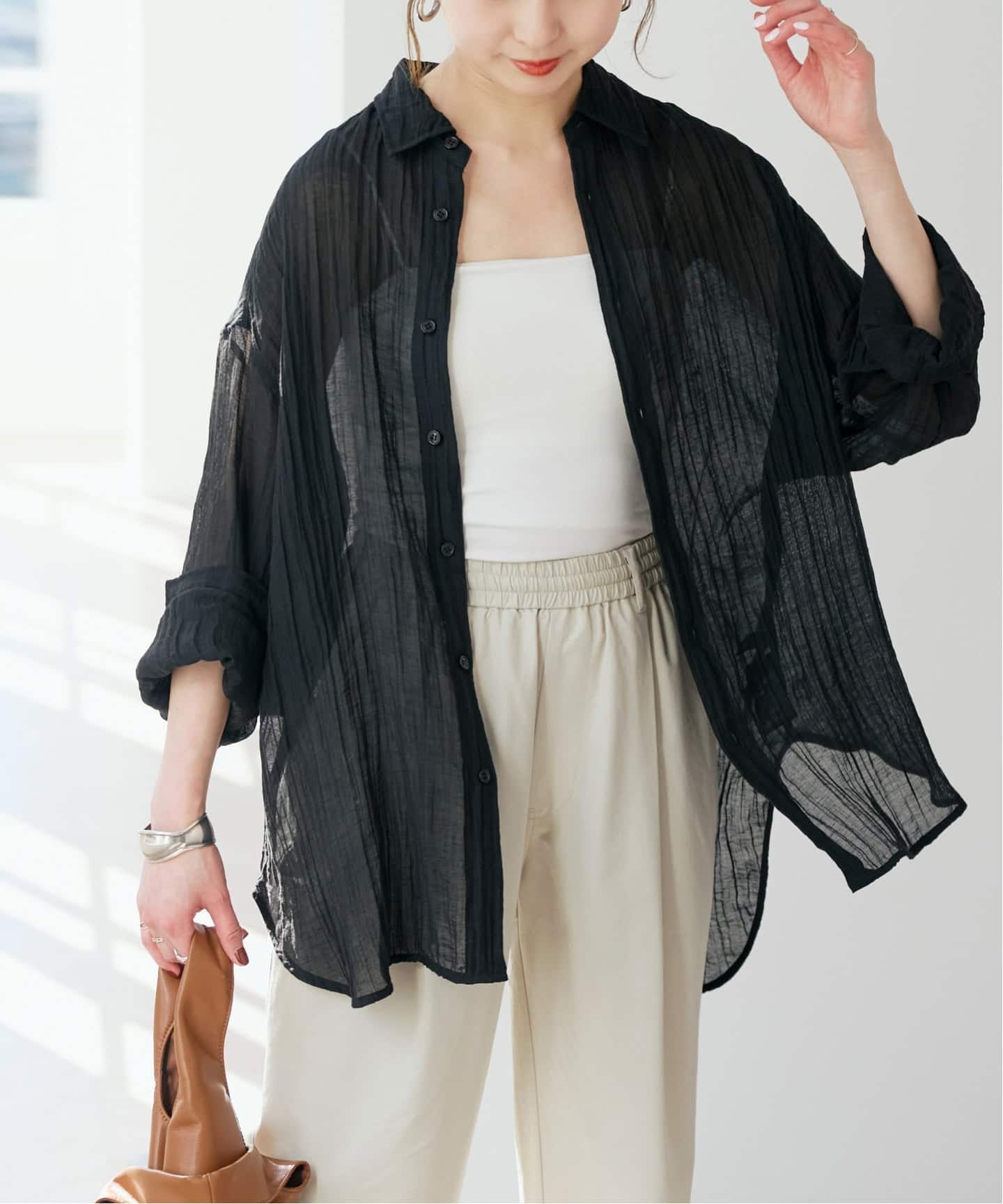 軽やかな着心地で、さっと羽織れる気軽さもポイント。