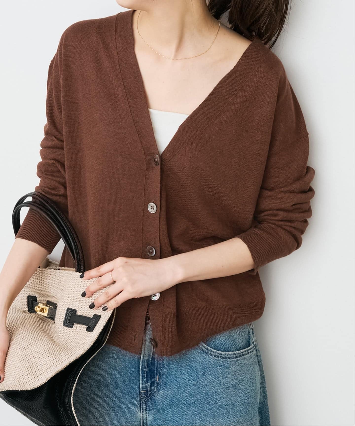 │レーヨンペーパーヤーンVネックカーディガン