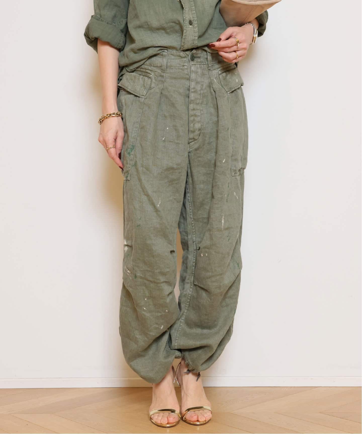 上質なリネンにダメージをかけた風合い、柔らかさに心掴まれました。ヘリルリップストップカーゴパンツのカーキを持ってるんですが、浮かぶスタイリングが全然違う!!とお買い上げ。