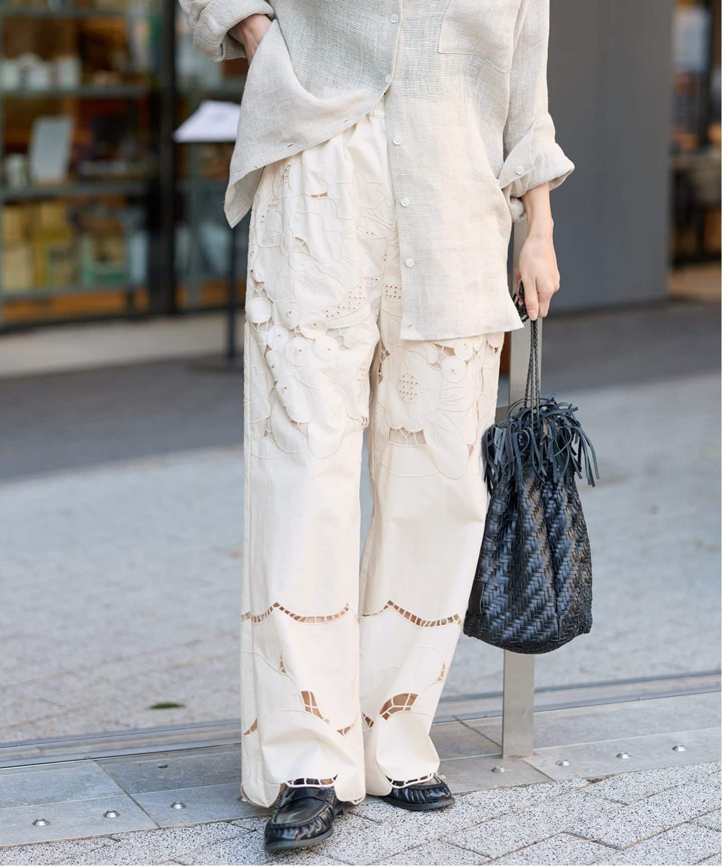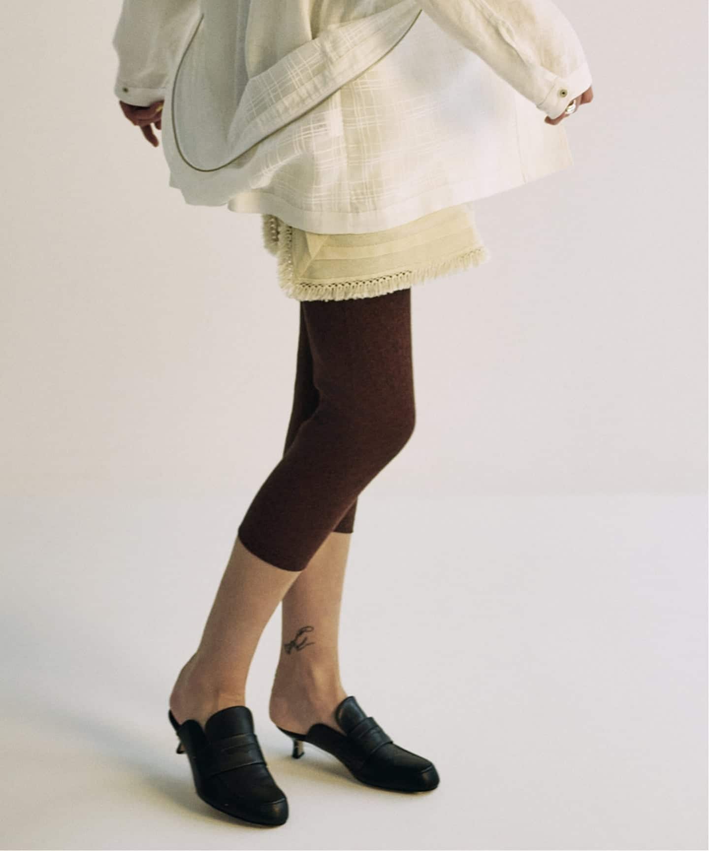 淡い印象のスタイリングが締まるように、シューズやバブーシュカなど小物にこだわりました。